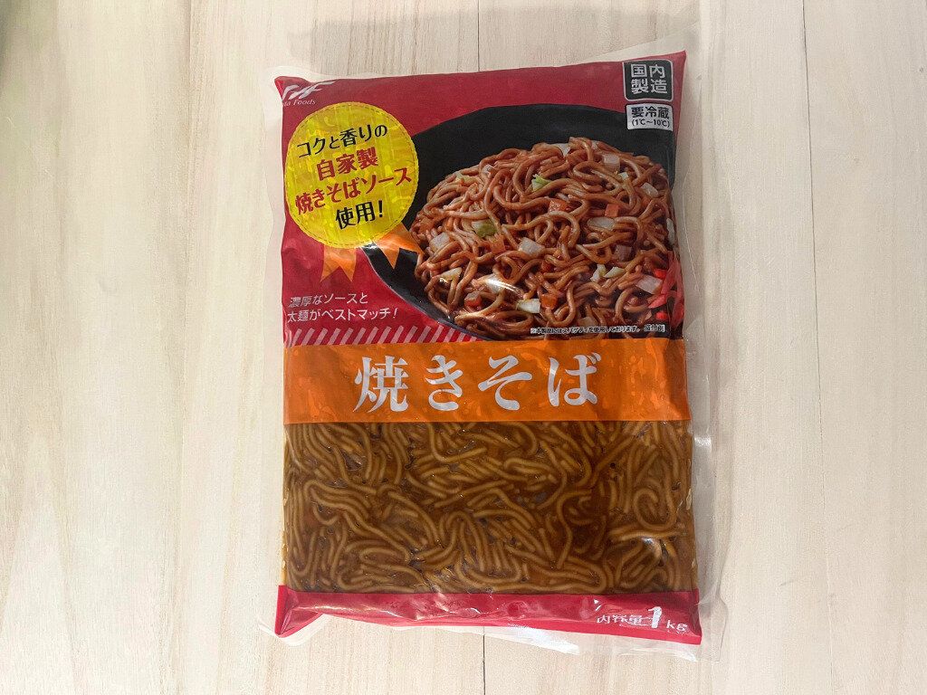 最後にご紹介するのはドドンと1kg入りの焼きそばです。こちらの焼きそばはありそうでなかった、冷たいままでも食べられる、味付け済みの商品なのですが、休日のランチをラクできる優れもの。