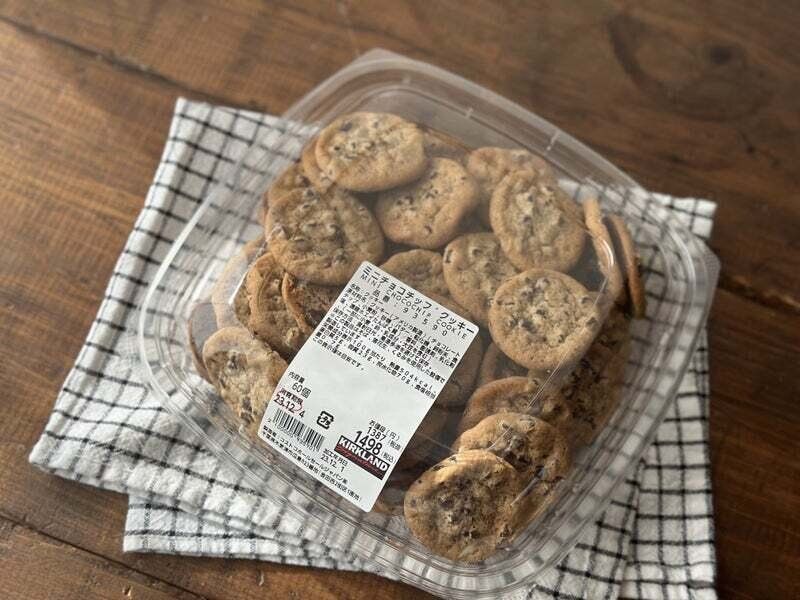 コストコのクッキーと言えば、直径10cm以上もある分厚いバラエティクッキーという商品が定番で並んでいますが、今回の商品はそのミニサイズ、直径5cmほどの大きさで登場しました。