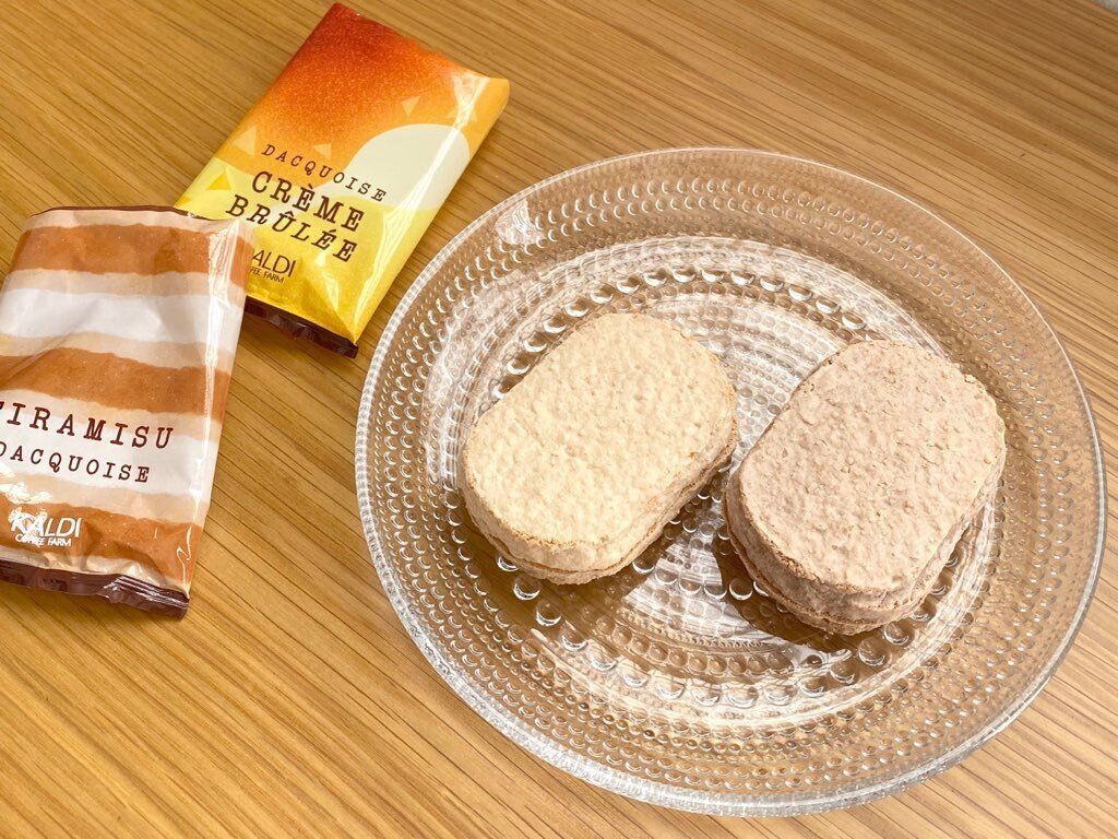 オンラインストア限定の「クレームブリュレダックワーズ」と「ティラミスダックワーズ」。どちらも100円台で購入できるとは思えない、クオリティの高い商品です。