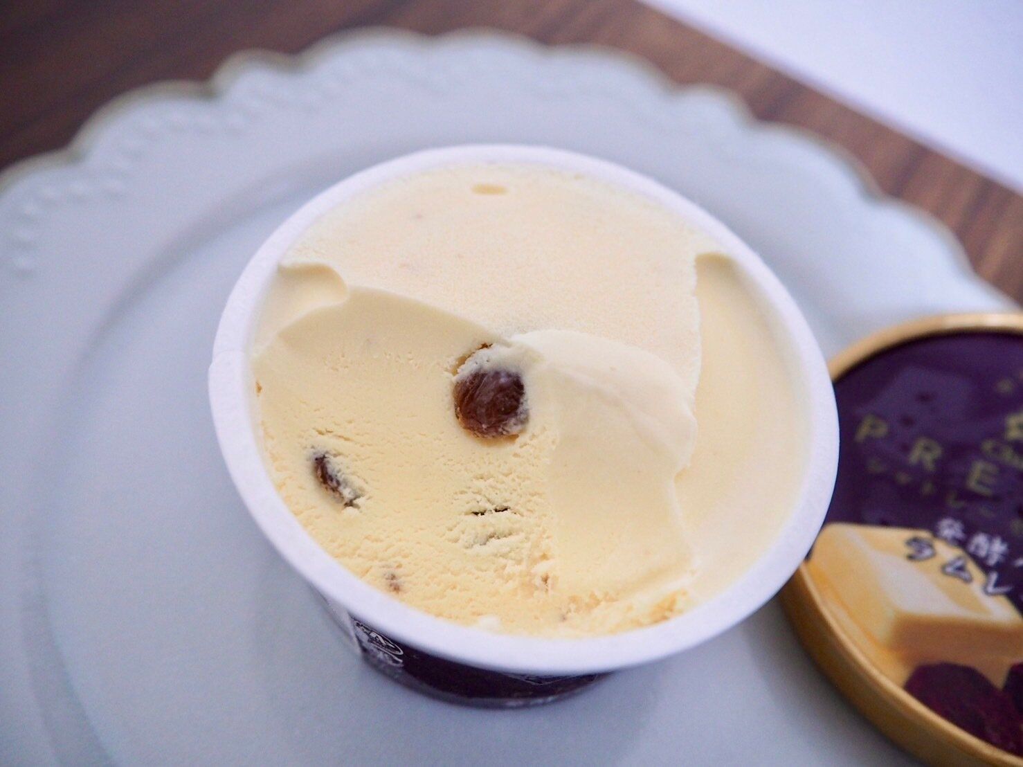 アイスを食べ進めていくと、ごろっと大粒のレーズンがお目見え。