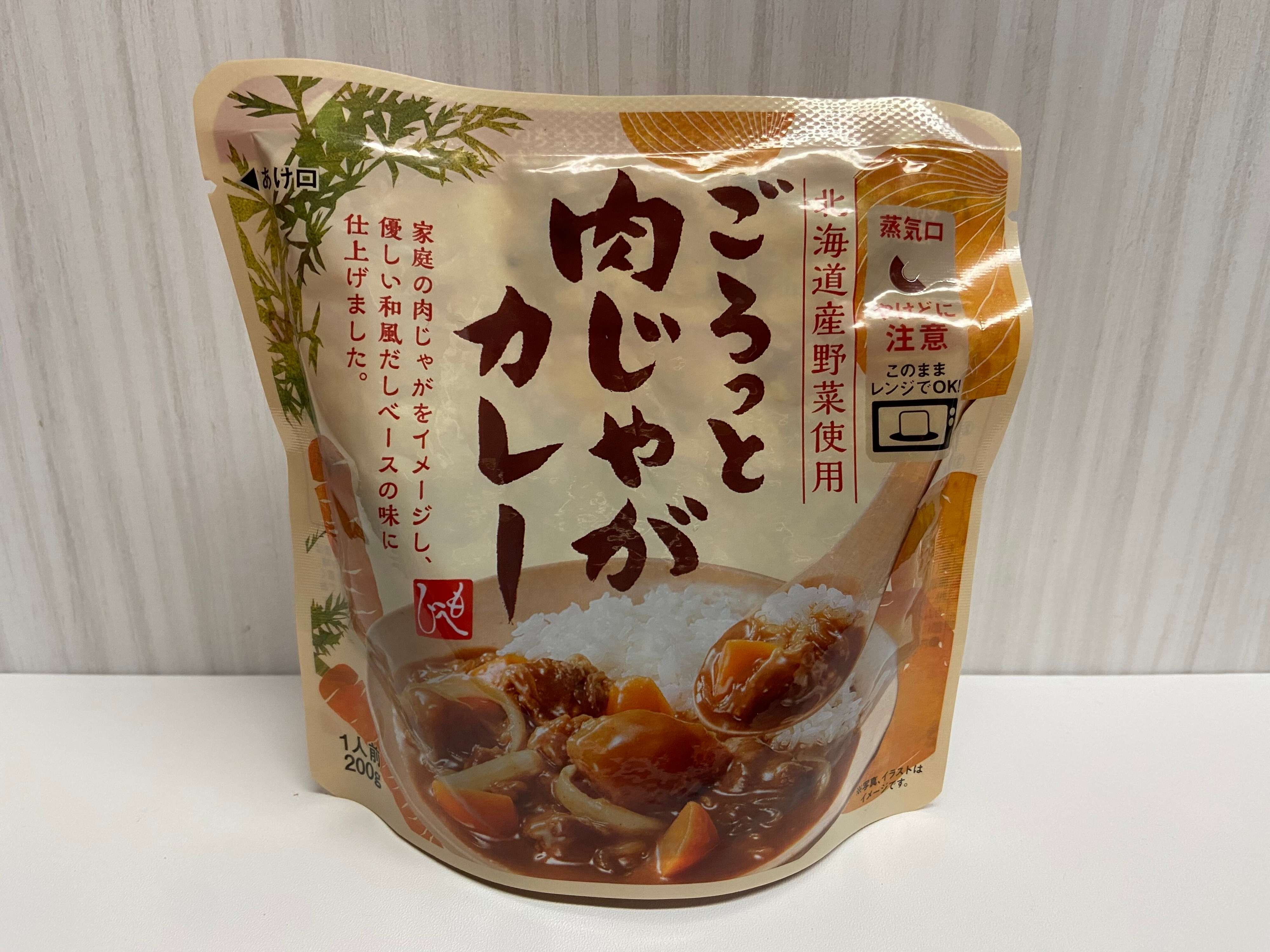 カルディのレトルト商品が並ぶコーナーで見つけたのは「ごろっと肉じゃがカレー」(購入時:278円)。