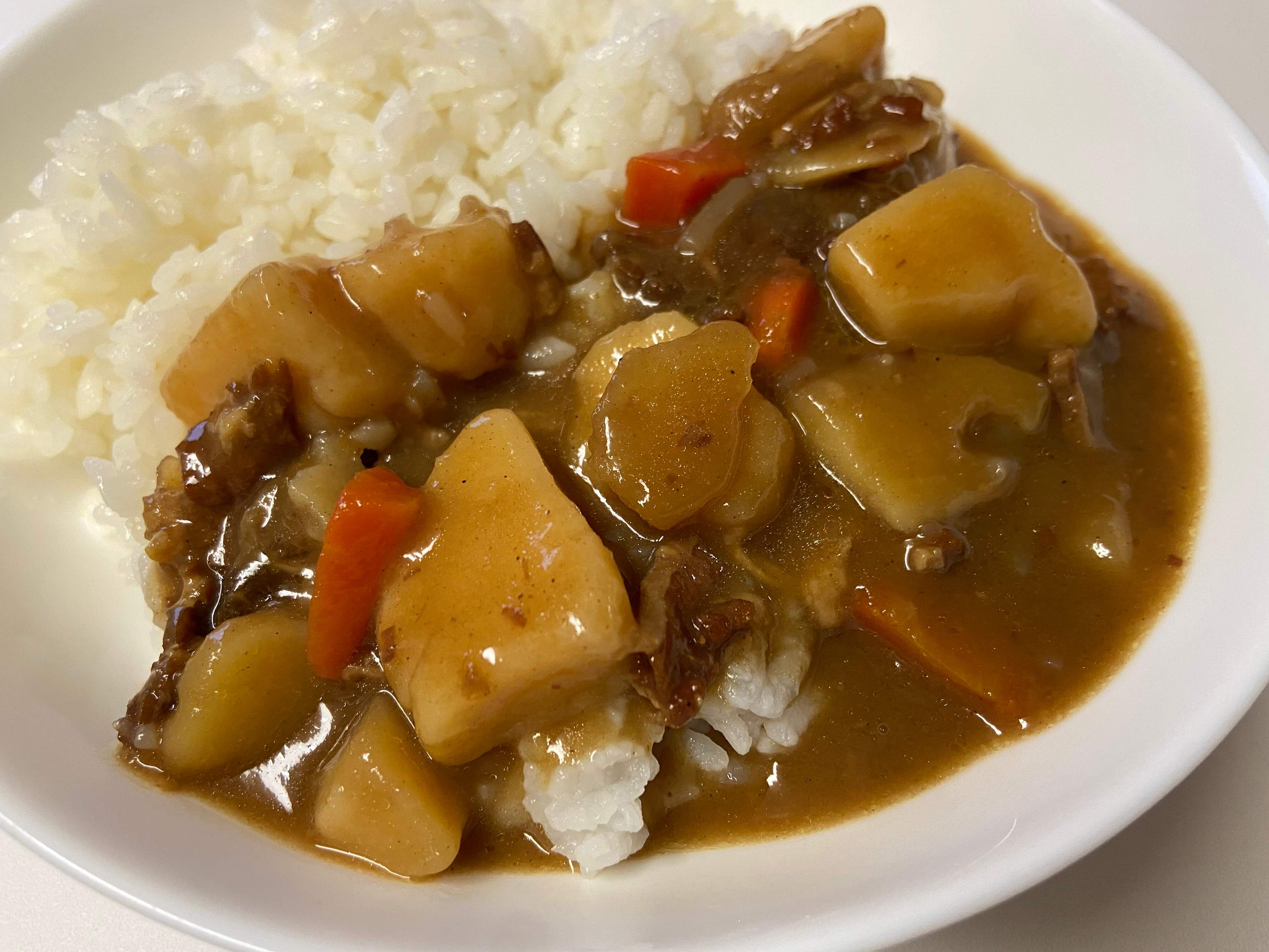 北海道産のじゃがいも、にんじん、玉ねぎは甘みと食べ応えがあって存在感抜群。だしが効いていてしらたきが入っているので肉じゃが感がありますね。牛肉もしっかり入っていて、ほろほろと柔らかく煮込まれていました。
