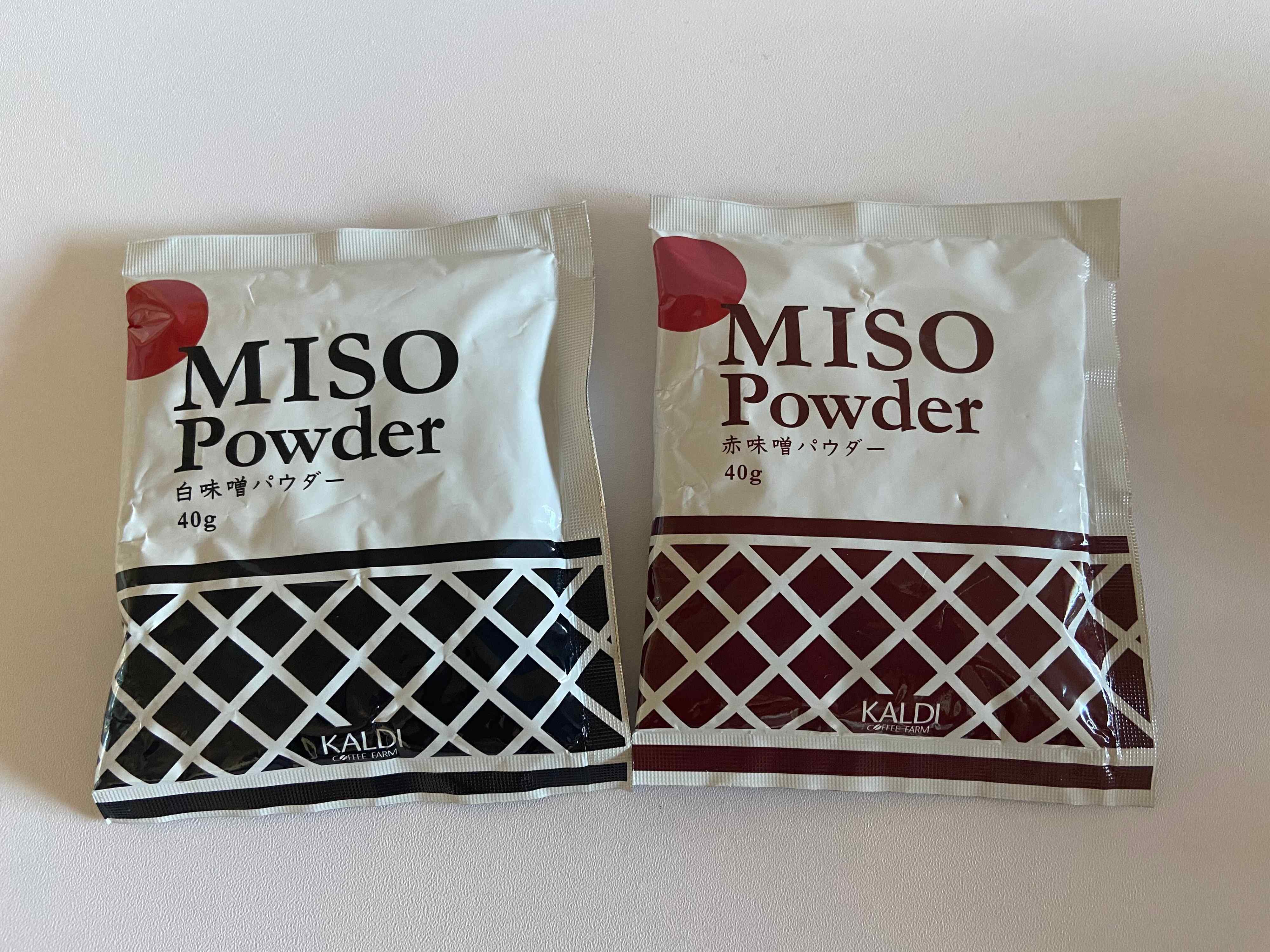 日本の伝統調味料「味噌」が粉末状になったちょっと珍しい商品。赤味噌と白味噌の2種類が販売されていました。