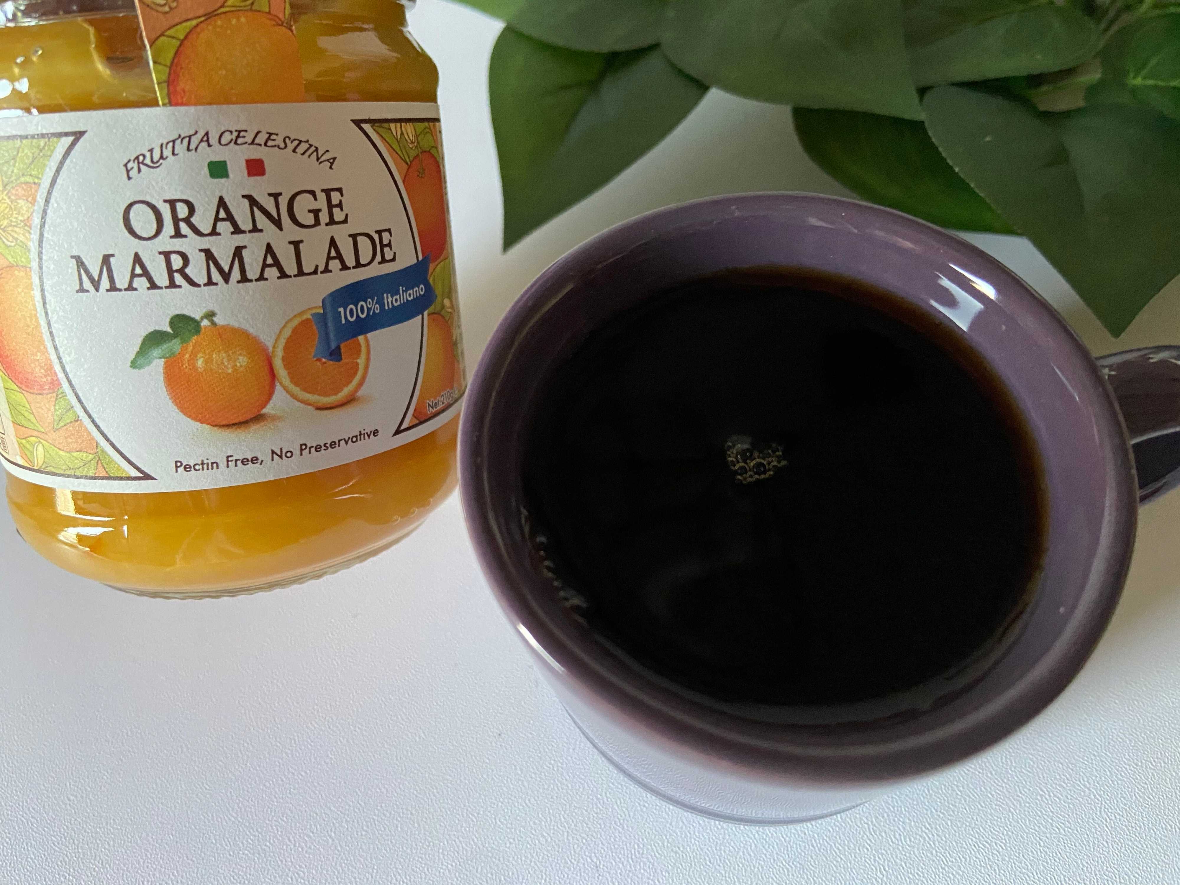 ホットコーヒーにティースプーン1杯のオレンジマーマレードを。意外な組み合わせですが、不思議とやみつきになるおいしさがあります。
