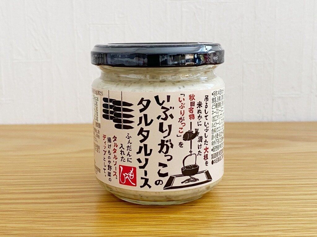 ほんのり香る燻製大根の風味とマヨネーズ、ピクルスの風味やお酢の酸味が絶妙にマッチ。細かく刻まれたいぶりがっこがたくさん入っているので食感もいいです。フライに添えるのはもちろん、パンや野菜のディップにもよく合います。
