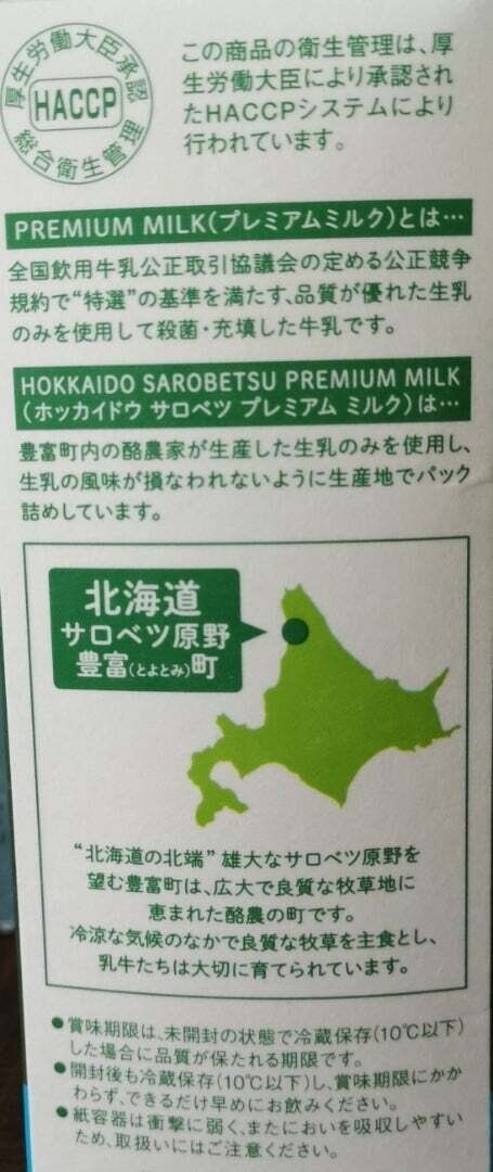 「北海道サロベツプレミアムミルク」は、豊富町内の酪農家が生産した生乳のみを使用し、生乳の風味が損なわれないように生産地でパック詰めされています。