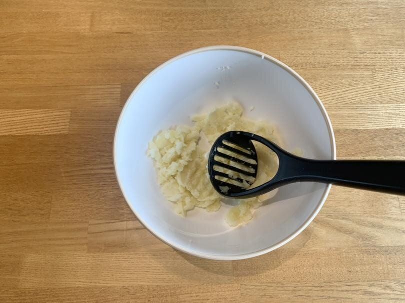 【1】じゃがいもは柔らかく蒸して、皮をむいてつぶす(電子レンジでもOK)