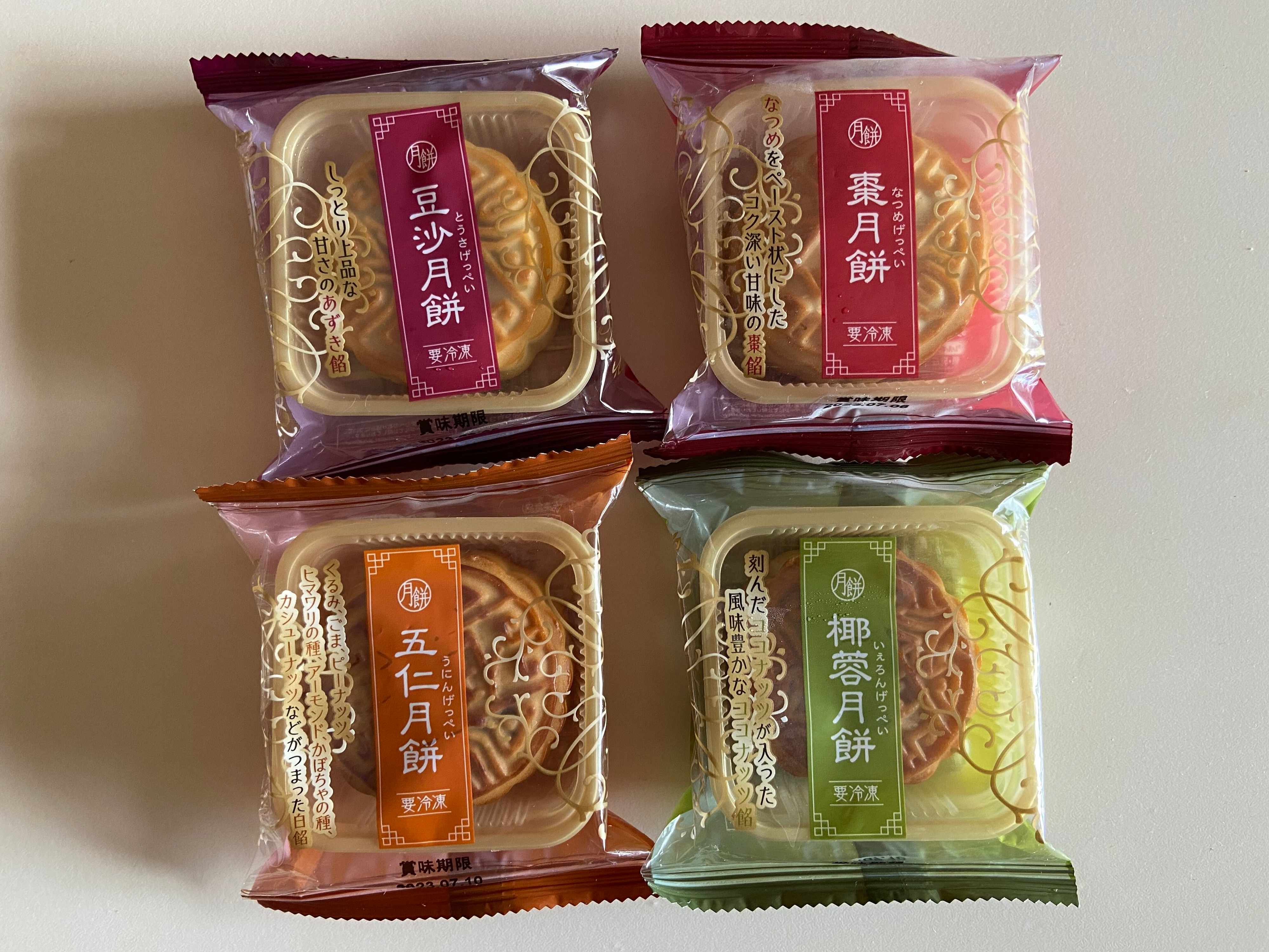 冷凍のスイーツコーナーを見ていたら、業務スーパーとしては珍しく1個入り個包装の商品が4種類並んでいて驚きました!日本でもおなじみのアジアンスイーツ、中華菓子の月餅です。それぞれ詳しく紹介していきます。