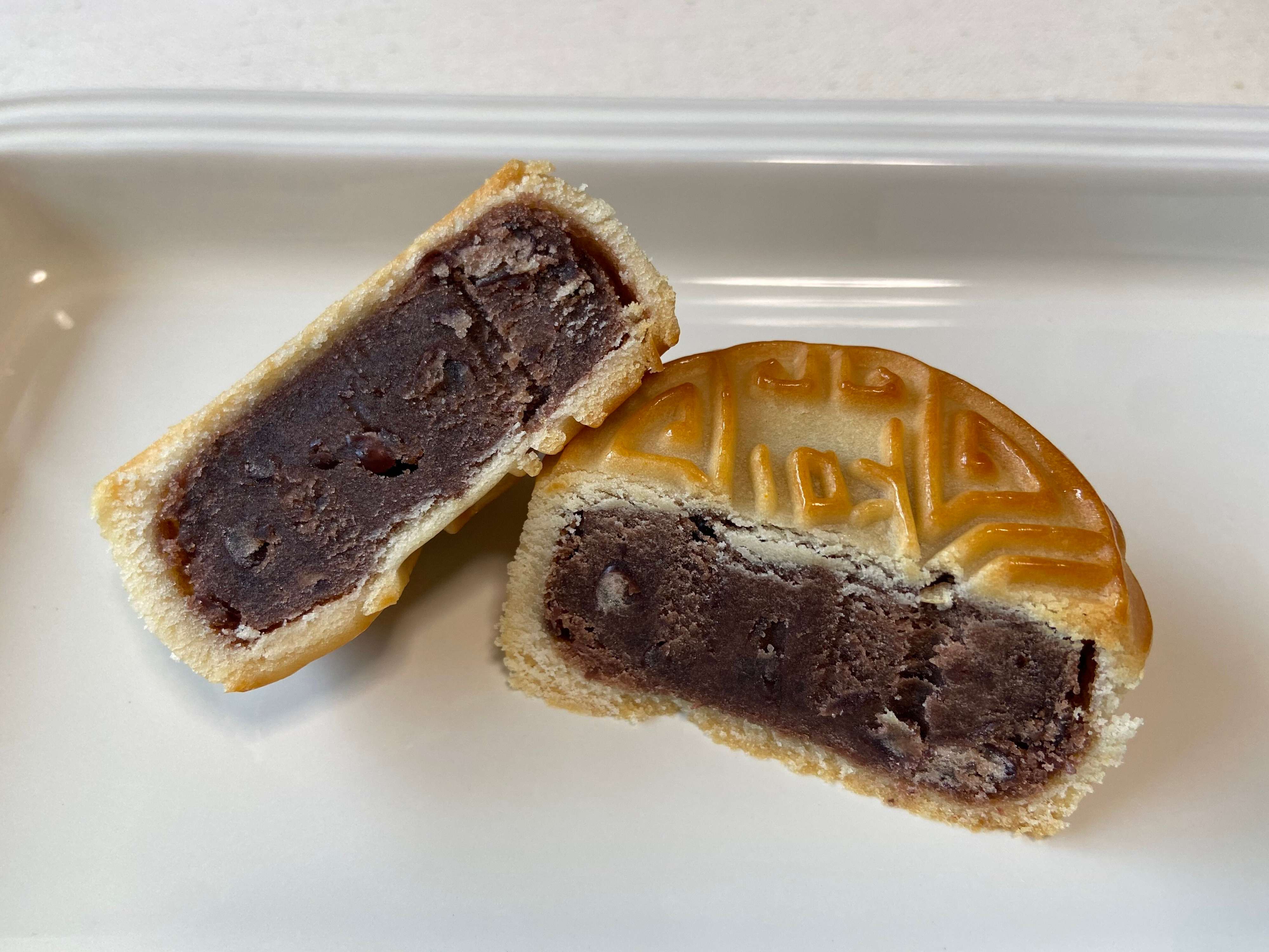 つぶあんがぎっしり入っていて、程よい甘さでしっとりとした生地とよく合います。小豆の粒感も感じられて上品でおいしい月餅でした。