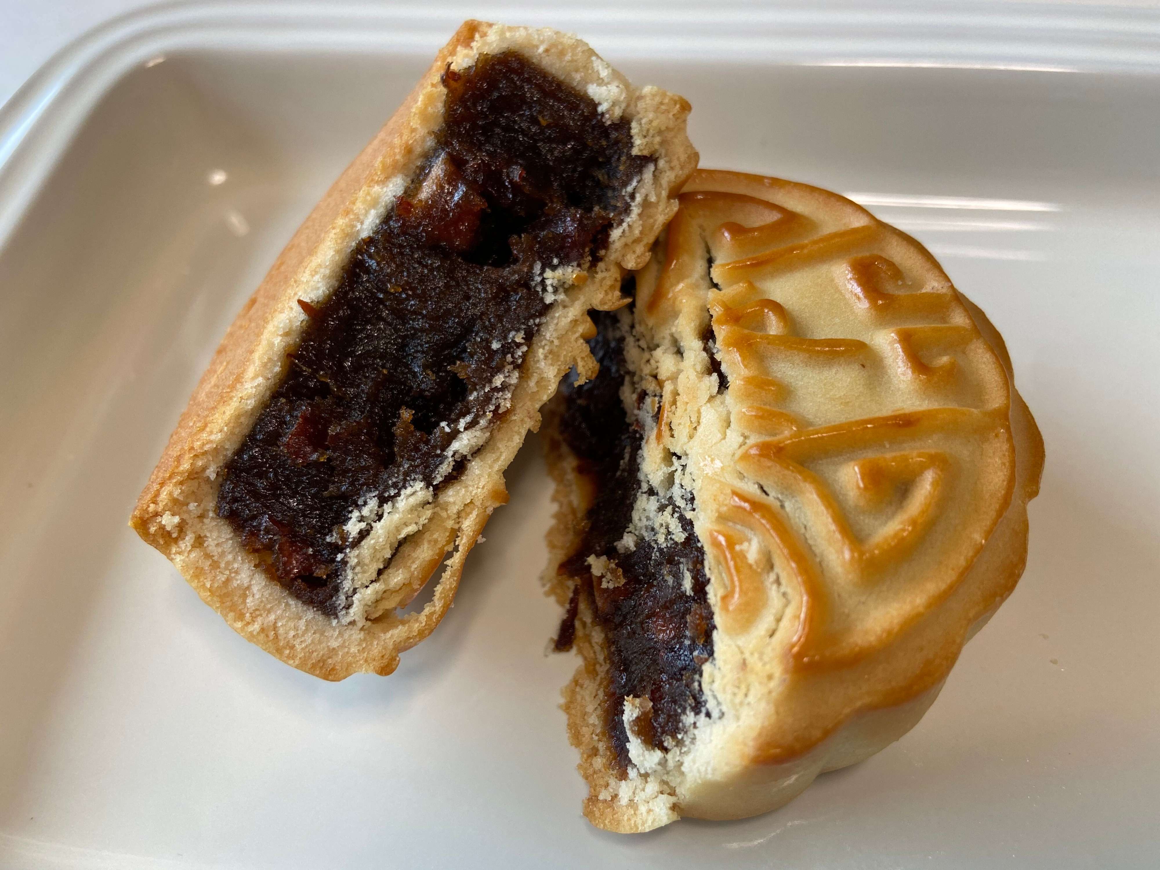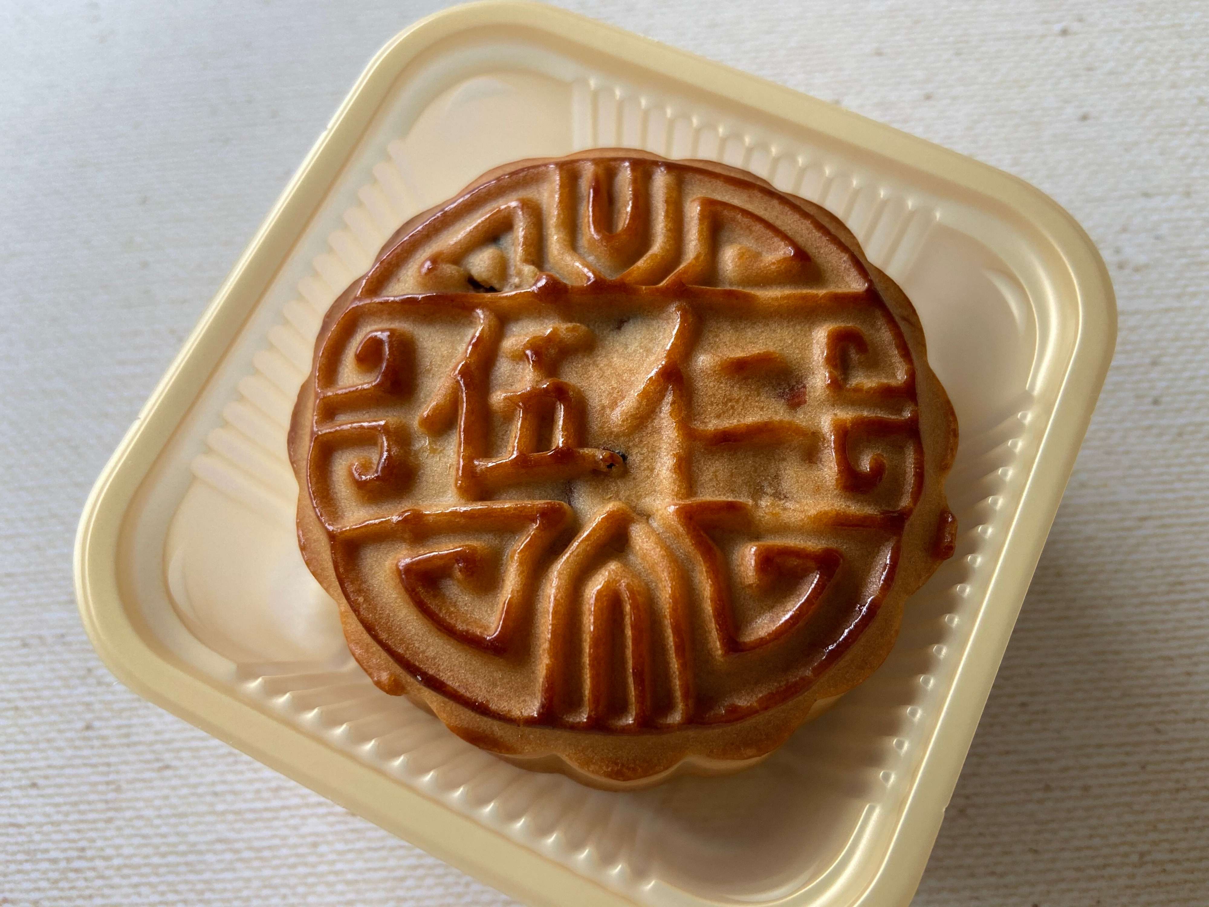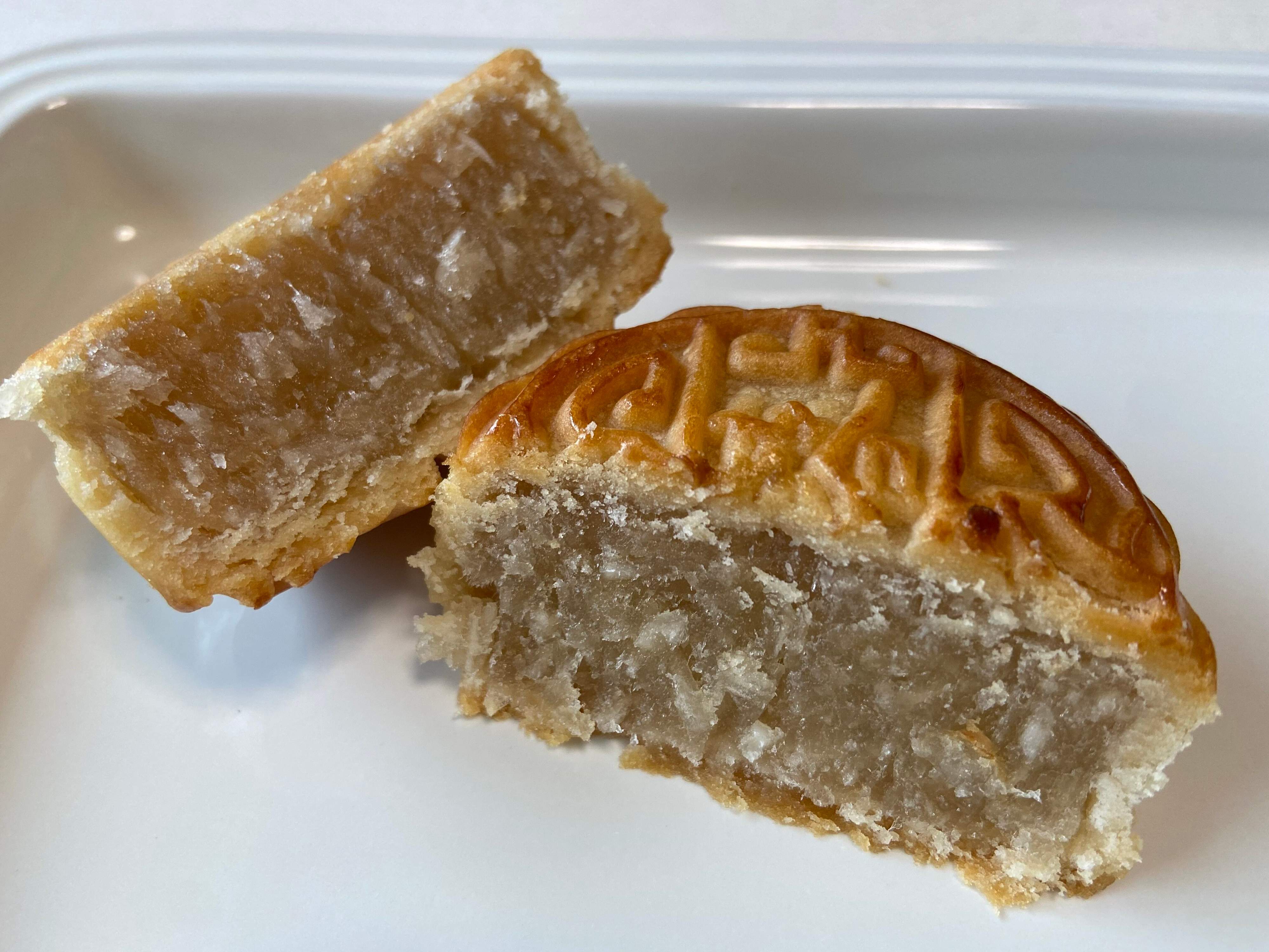 美しく模様が型押しされていて見た目でも楽しめますね。筆者は月餅といえばあんこ入りが1番なじみがあるので、まずこれを食べてみました。