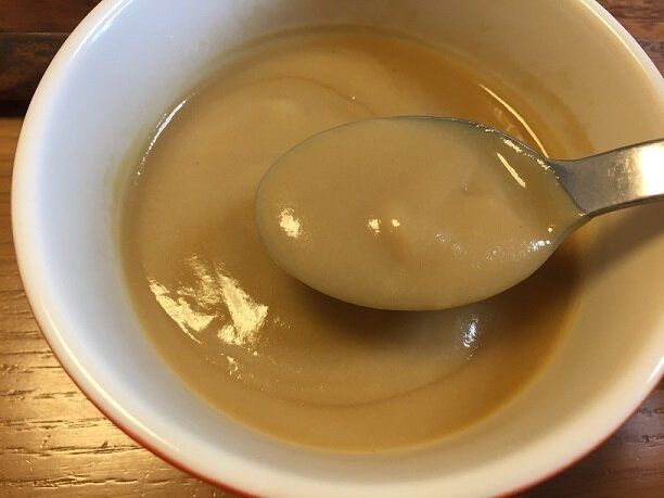 パウチごと熱湯で5分ほど温めて器に入れました。とろりとしたスープは濃厚なさつまいもの味わいで「焼き」の香ばしさもちゃんと感じられるシンプルながら奥深い味!
