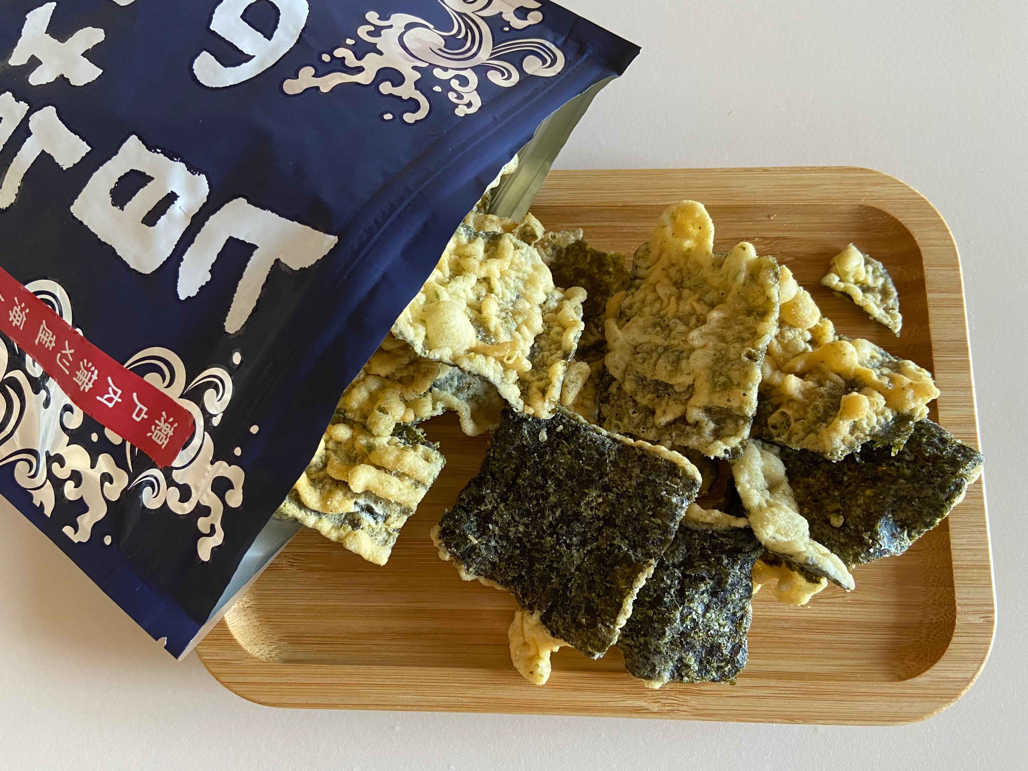 さっそく食べてみると、想像以上のおいしさ。しっかりめに効いた塩が、のりの風味とサクサクスナックの味を引き立てていて、とてもおいしい!