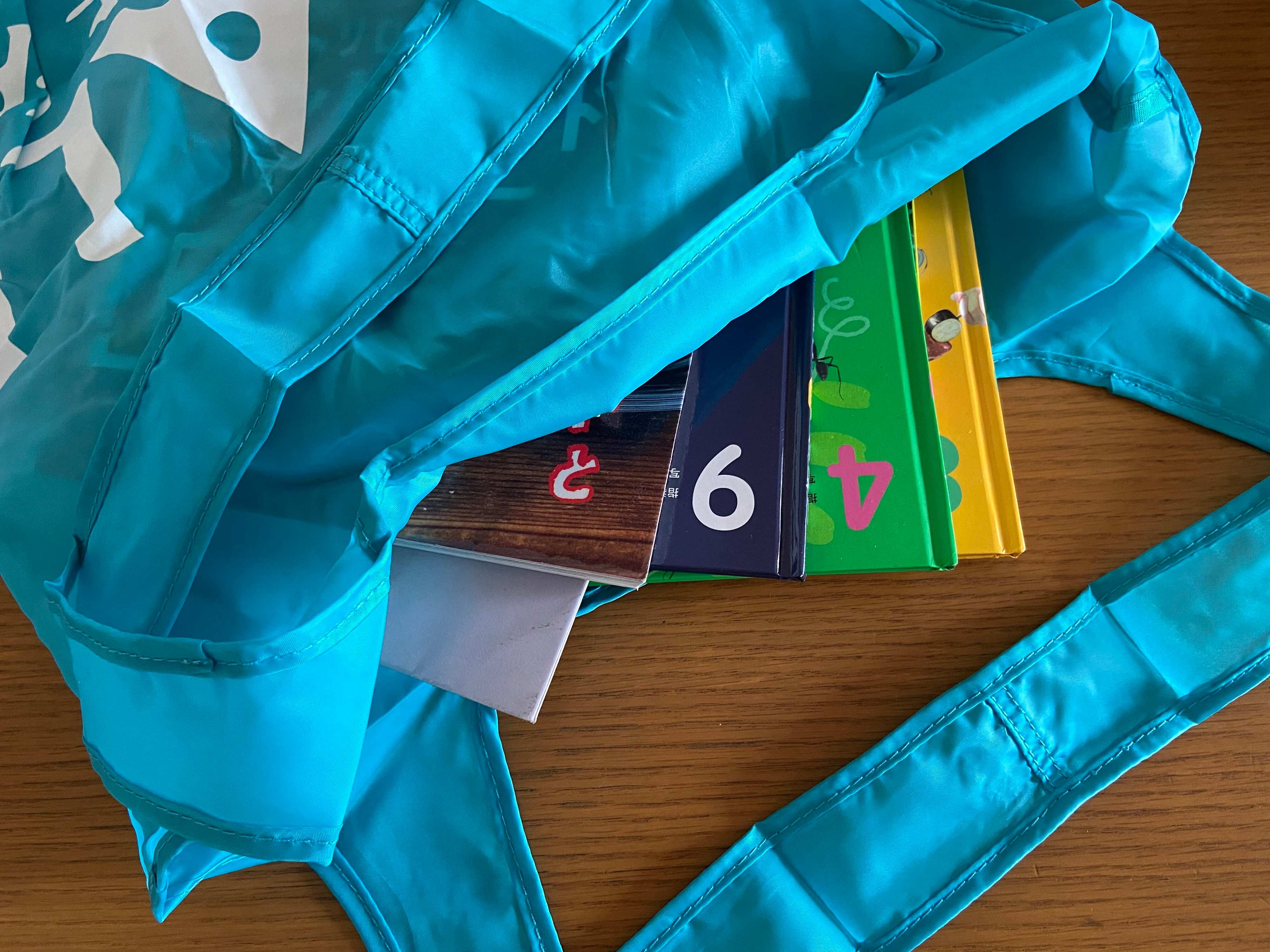 筆者は子どもたちと図書館に行く機会が多く、借りた本、返す本の持ち運び用バッグとしても重宝。使わない時は軽くてコンパクトにしまえるのに、広げるとしっかり重たい荷物も運んでくれます。
