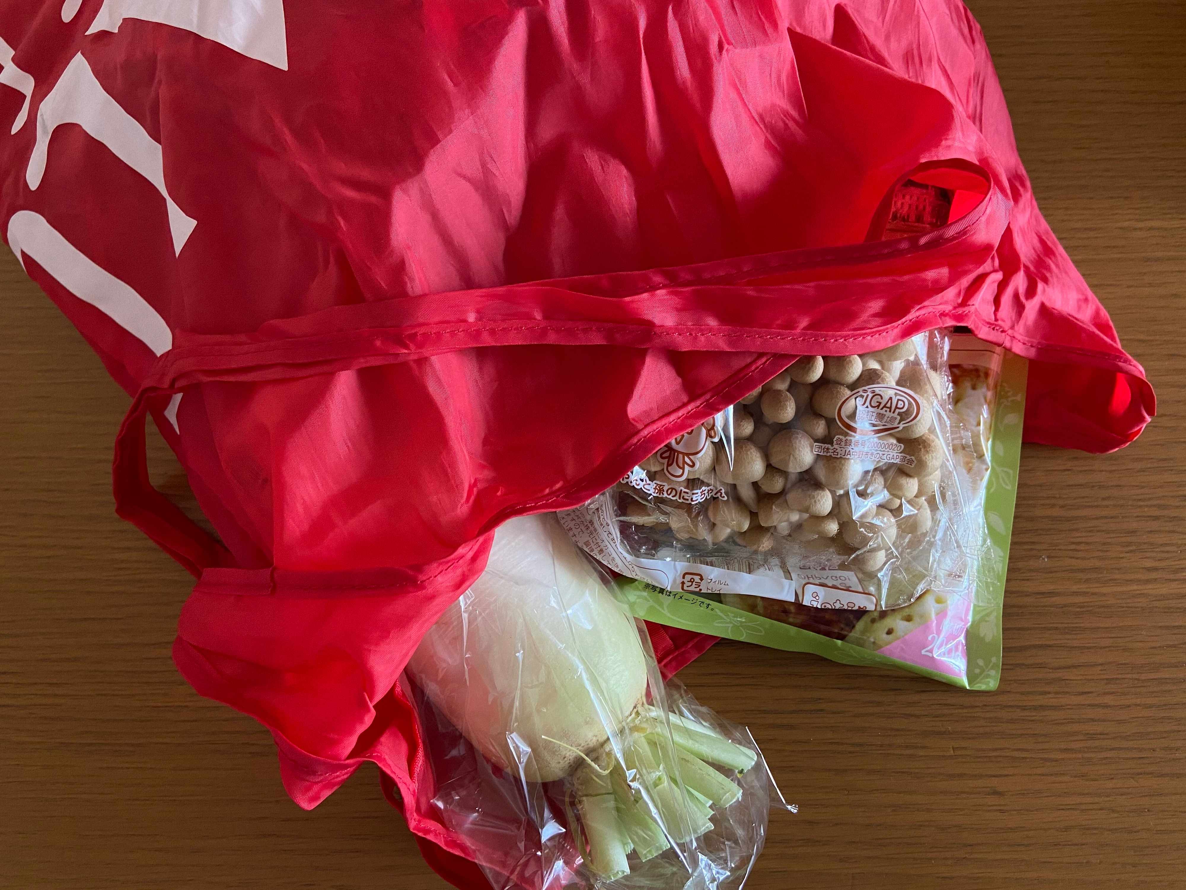 食料品の買い出し時には一番活躍しているカルディのエコバッグ。筆者はバッグにいつも2~3個カルディのエコバッグを持ち歩いています。エコバッグ自体はとても軽いので負担にはなりません。