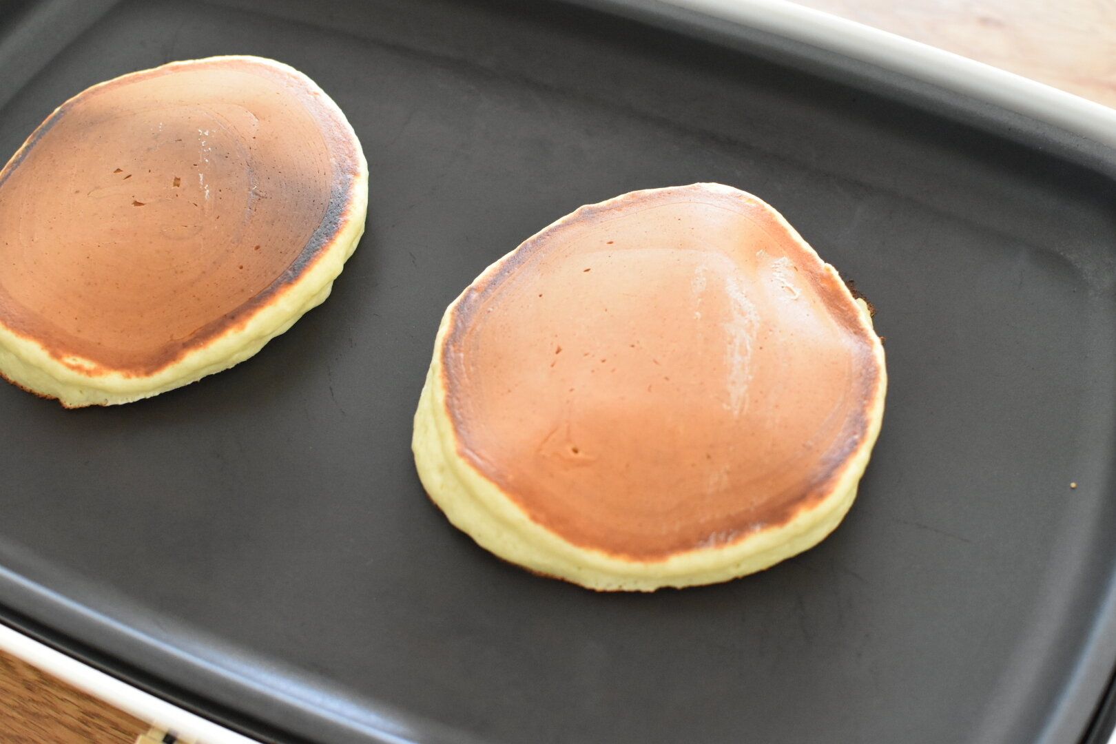 厚みのあるホットケーキは中が生焼け状態になりやすいため。注意も必要です。