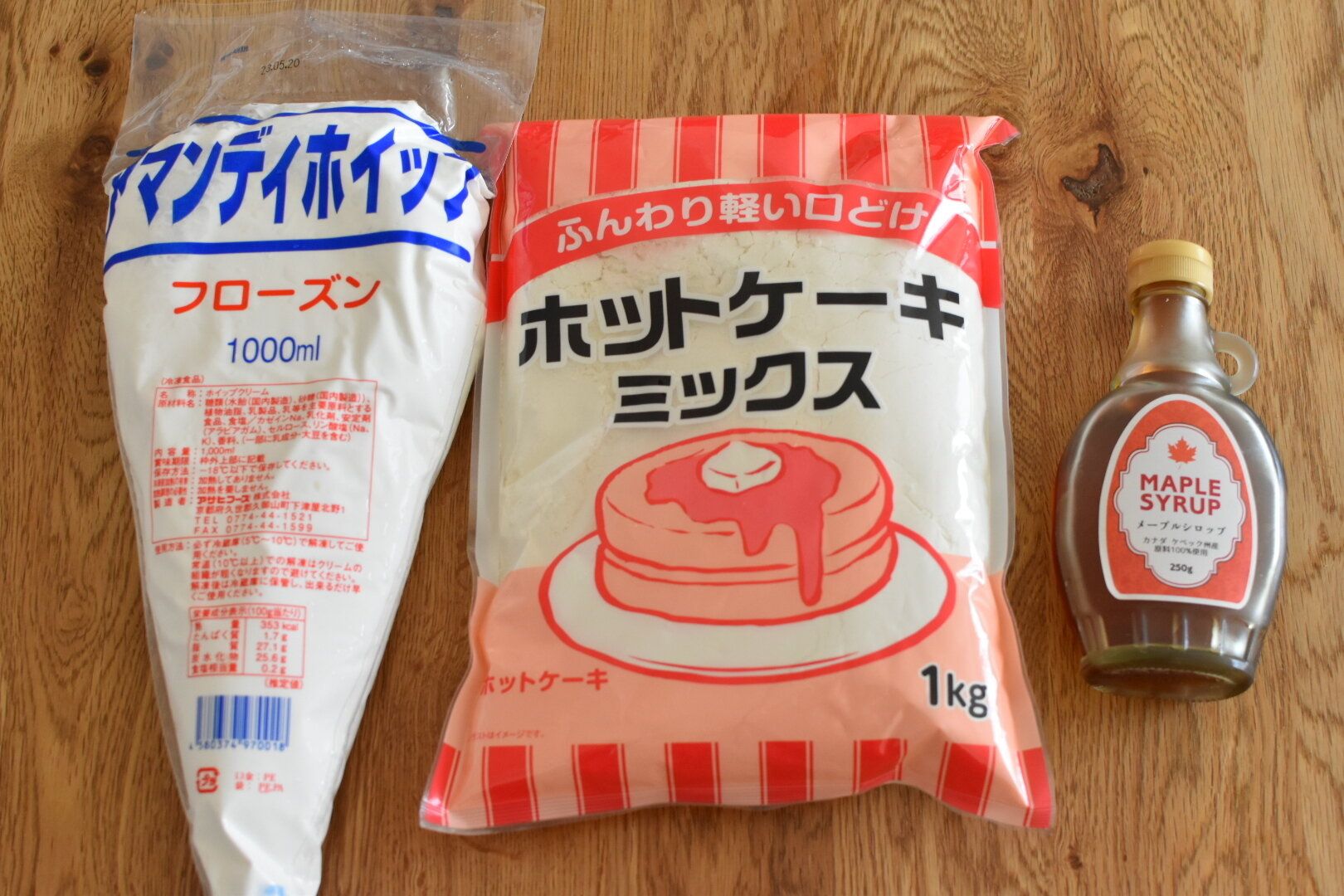 業務スーパーではホイップクリームやメープルシロップも販売されているので、一緒に購入するのがおすすめです。
