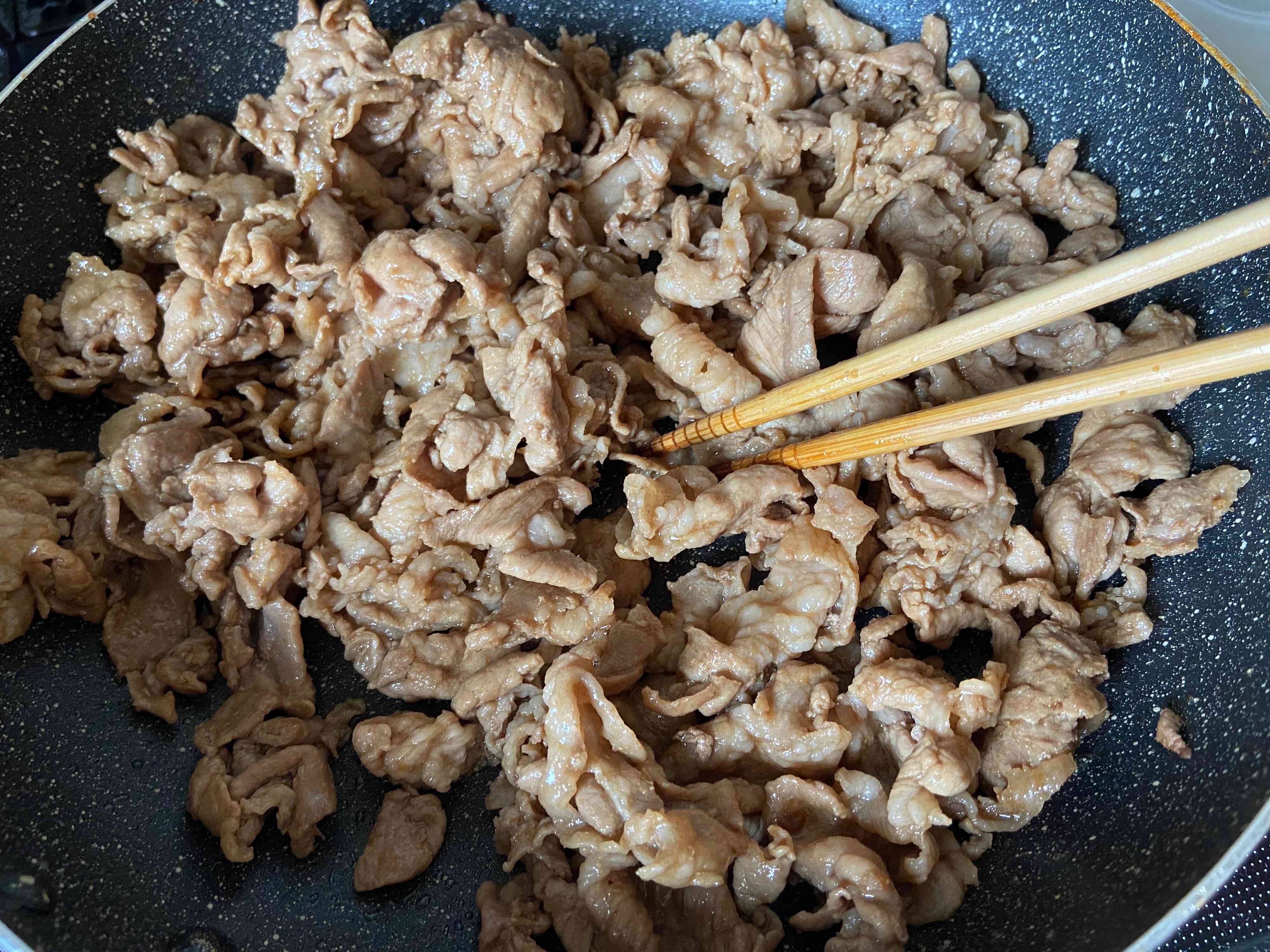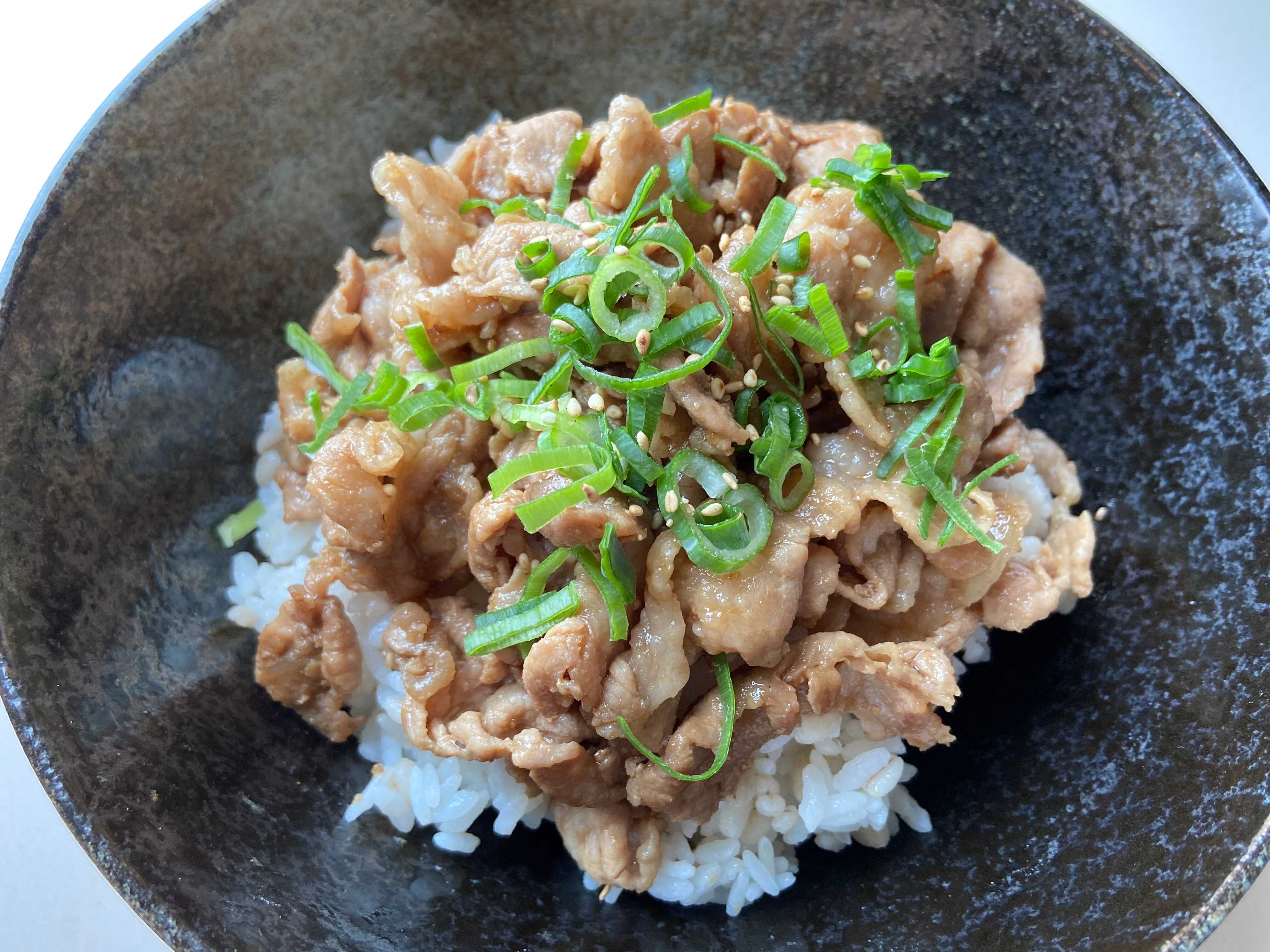 まずカットしたお肉にたれを絡めて30分ほど漬けておきます。その後フライパンに少量の油を引き、火が通るまでお肉をしっかり焼きます。どんぶりにご飯を盛り、お肉をたっぷりのせれば完成!