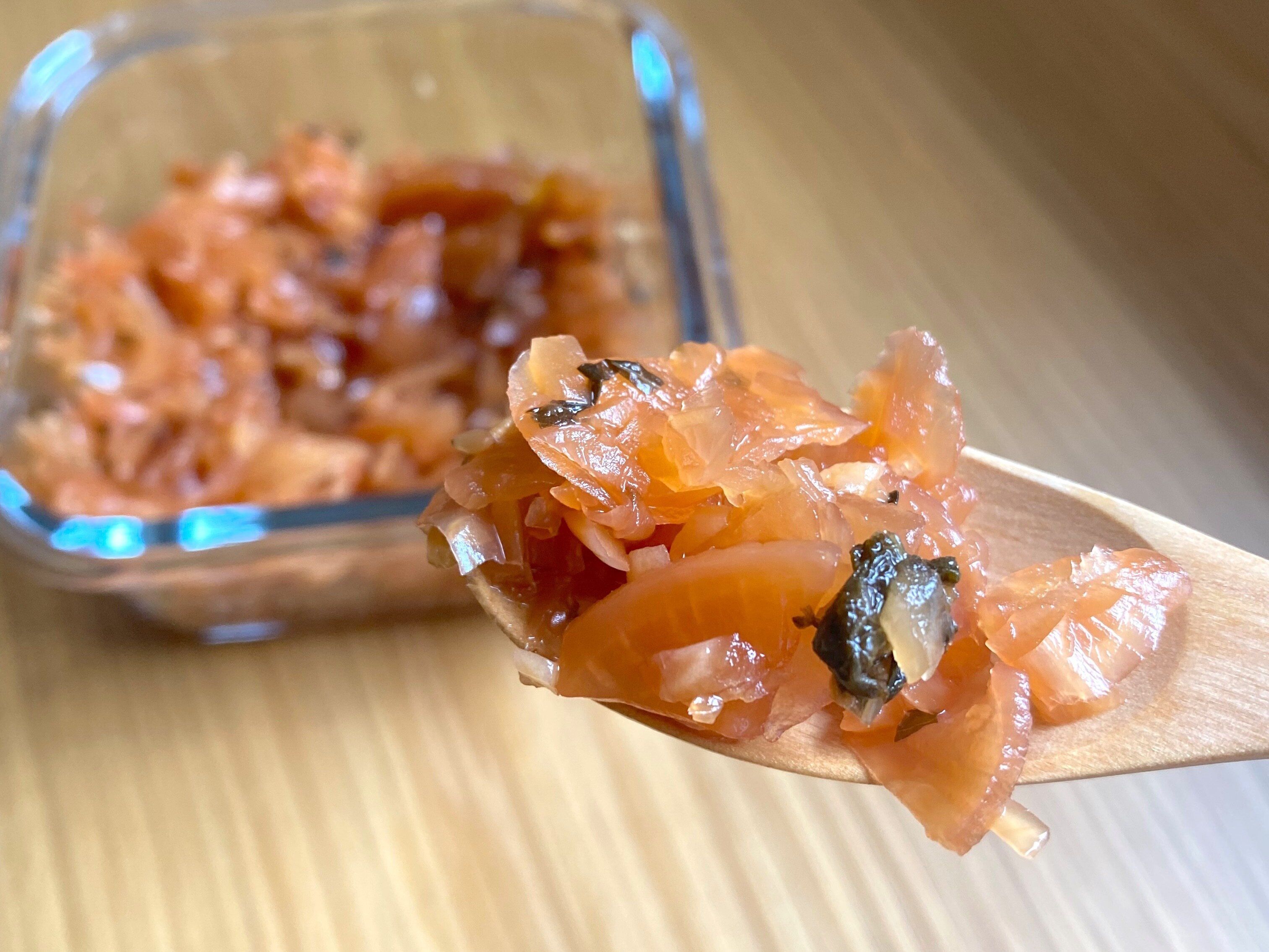 食べてみると全体的に甘みがあり、生姜とシソの葉の風味がふわっとひろがります。それぞれが特徴のある味の食材ですが、クセがなく絶妙にマッチしています。