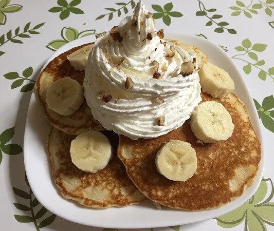 筆者はカフェで出てくるようなてんこ盛りのホイップに、バナナとナッツを添えてみました。ホイップをたっぷりつけて食べるパンケーキは最高!パンケーキ自体がとてもシンプルな味わいだから、いろいろな具材と合わせて見た目も味も楽しめそうです。