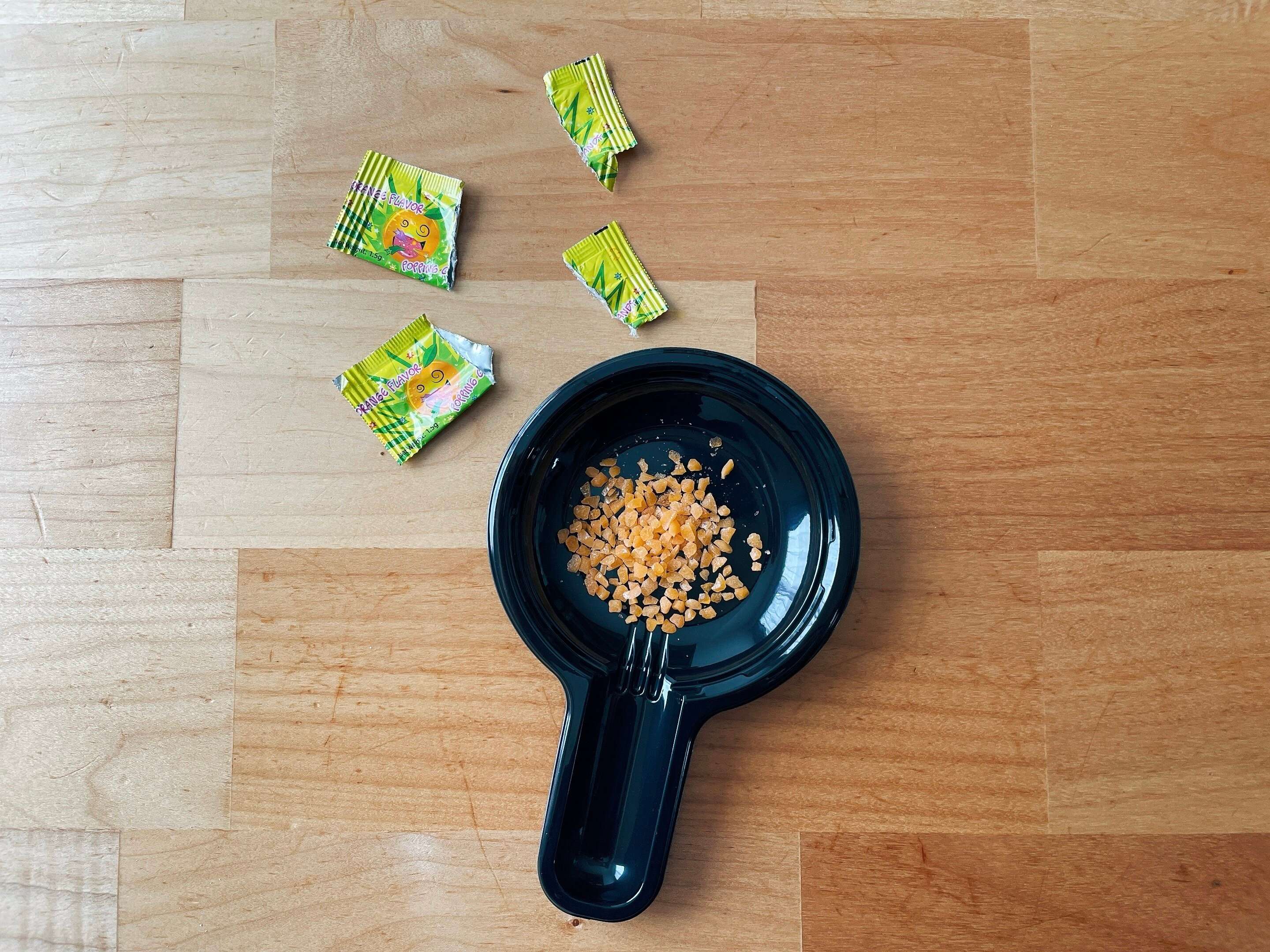 付属のナイフで切った感触が、本当に目玉焼きの半熟の黄身のようで、とても不思議でした。