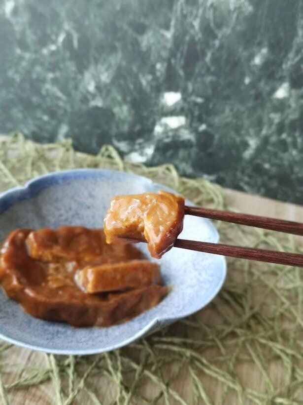 箸でつかむのがやっとなほど、とても柔らかくしっかり中まで味が染みています。味つけは、甘辛い味噌味でコックリとしたコクのある味わいで、白ごはんがワシワシ進んでしまうこと間違いなし!ビールや日本酒との相性もよいので、おつまみにも最高ですよ。