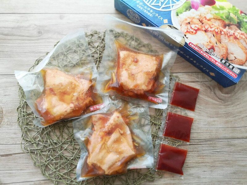 こちらの商品は、すでに味つけをした鶏肉と、食べる際にかけるソースとがセットになっていて、なんと、炊飯器でお米といっしょに炊くだけで完成してしまう優れもの!