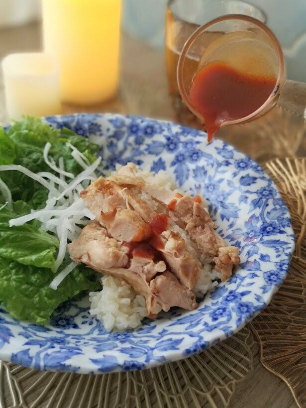 ハイナンチキンライスとも呼ばれるシンガポールの名物料理のひとつで、鶏肉といっしょにごはんを炊き、食べる際には、チリソースやオニオンソースを合わせる料理です。