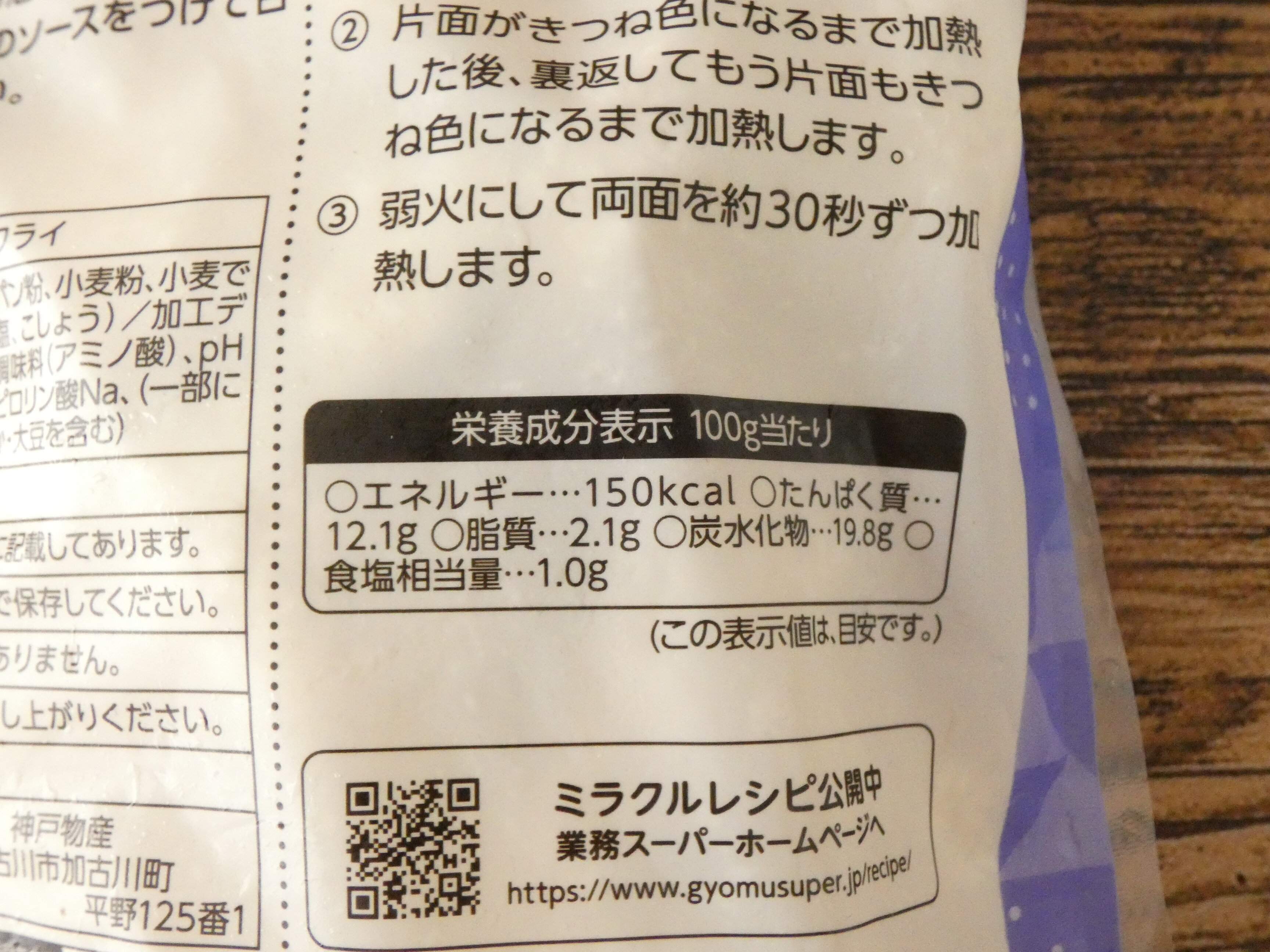 栄養成分表示を見ると、100g当たりのエネルギーは150kcal。