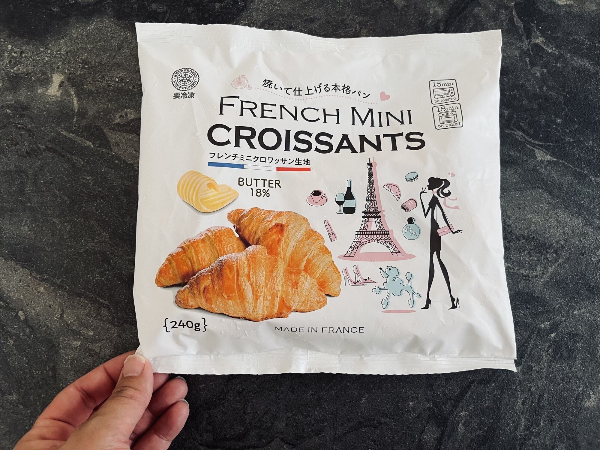 今回ご紹介するのは、業務スーパーの「FRENCH MINI CROISSANTS」。1袋10個入りで価格は298円。フランスからの直輸入クロワッサンです。ただし、そのままでは食べられないので、半解凍にしてからオーブンなどで焼き上げます。