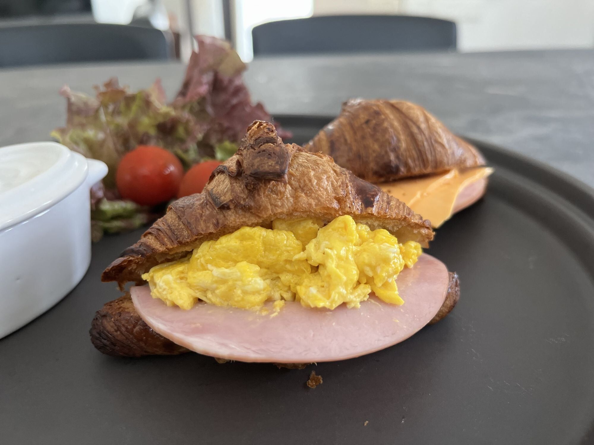 そのまま食べてもおいしいですが、ハムやスライスチーズ(チェダーチーズ)、卵を挟んでクロワッサンサンドにするとなおおいしい!