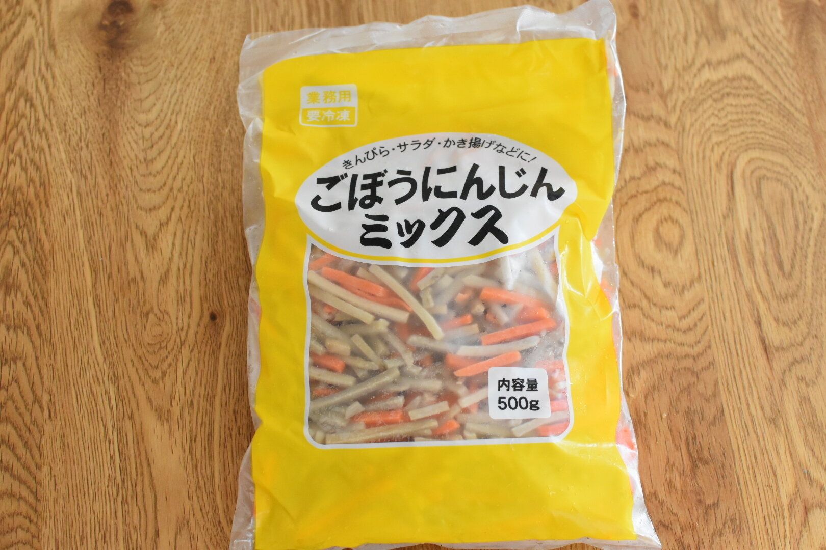 カットされたにんじんとごぼうのセットです。シンプルな組み合わせで、使う料理を選ばないのが、こちらの商品の魅力。