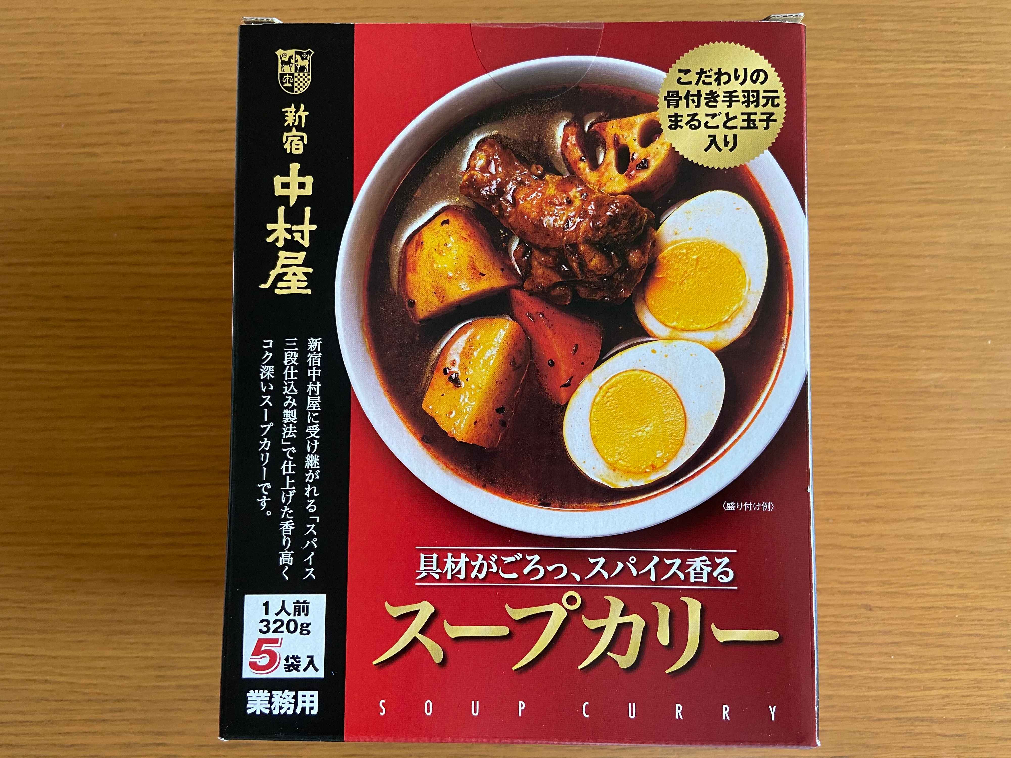 大きな具材が魅力的「新宿中村屋スープカリー320g×5パック」