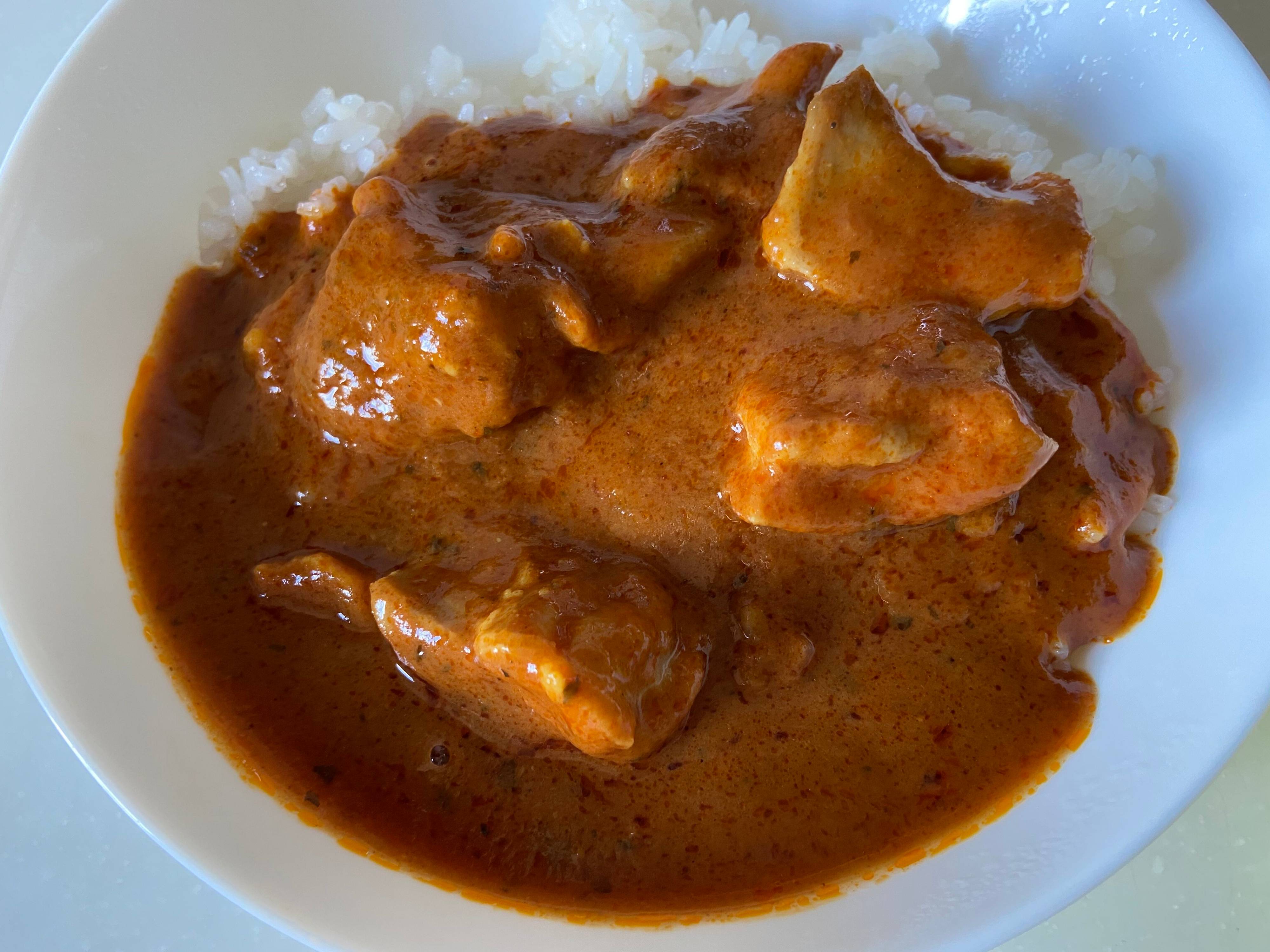 「印度の味バターチキン」はとにかくクリーミーで辛さはほとんどなくマイルドなテイスト。インドカレー屋さんで食べる本格的なバターチキンカレーのような、じっくり煮込んだコクを感じられるとってもおいしいカレーです。白いご飯も合うけれど、ナンに合わせて食べると最高ですよ。