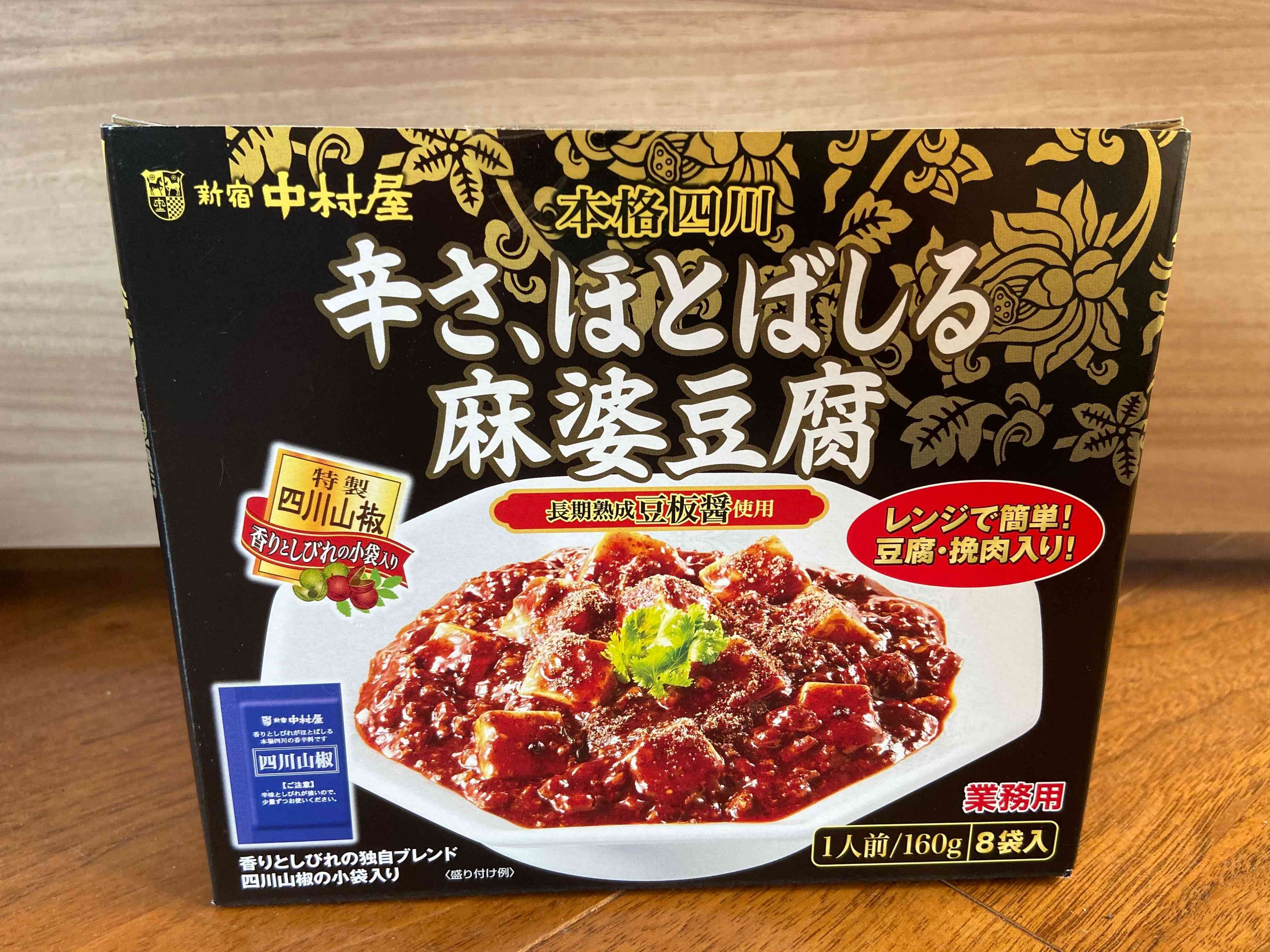 新宿中村屋はカレーだけでなく麻婆豆腐のレトルトも人気です。こちらは1パック160gで8袋入り。電子レンジや湯せんで調理することができます。