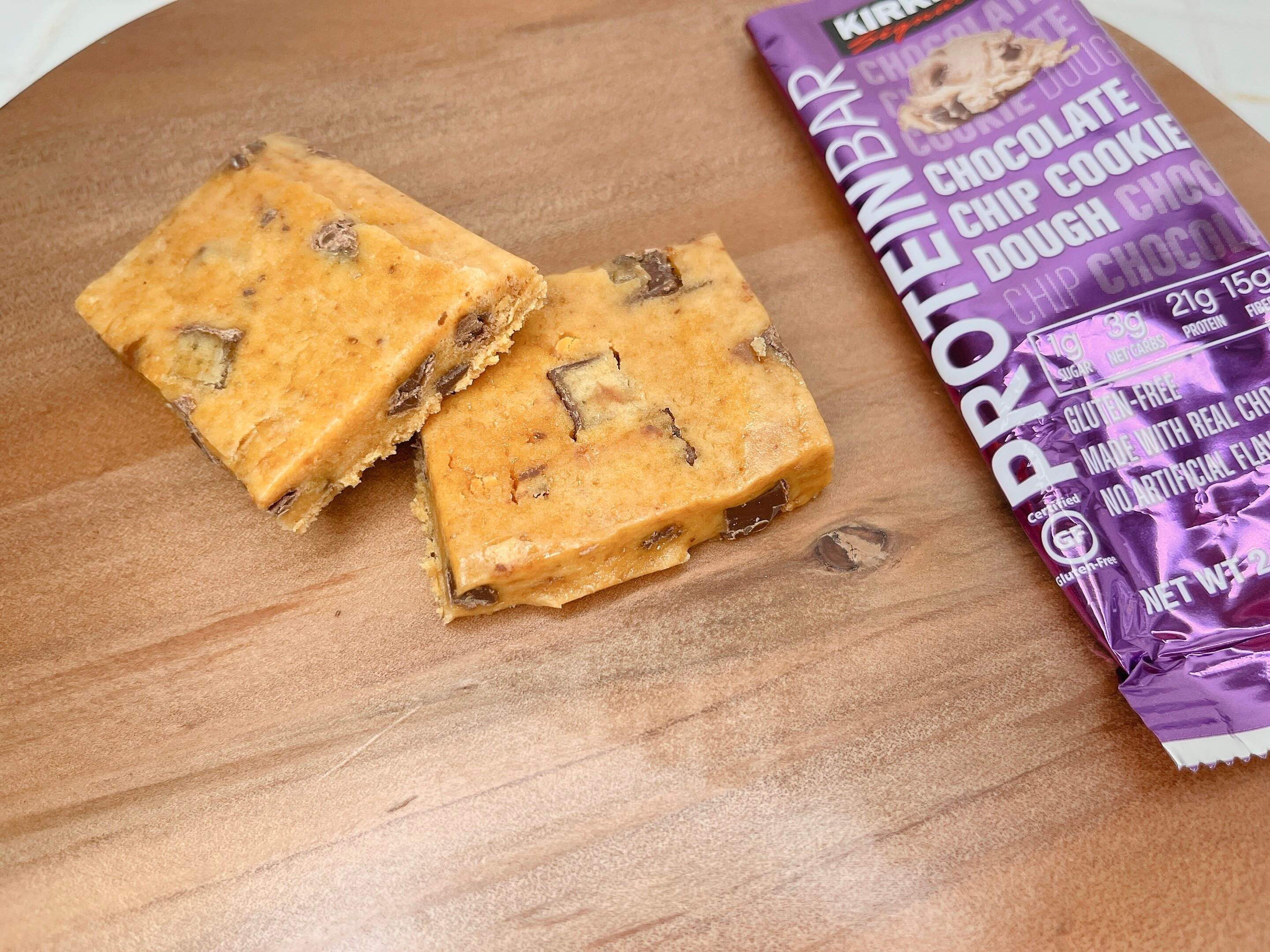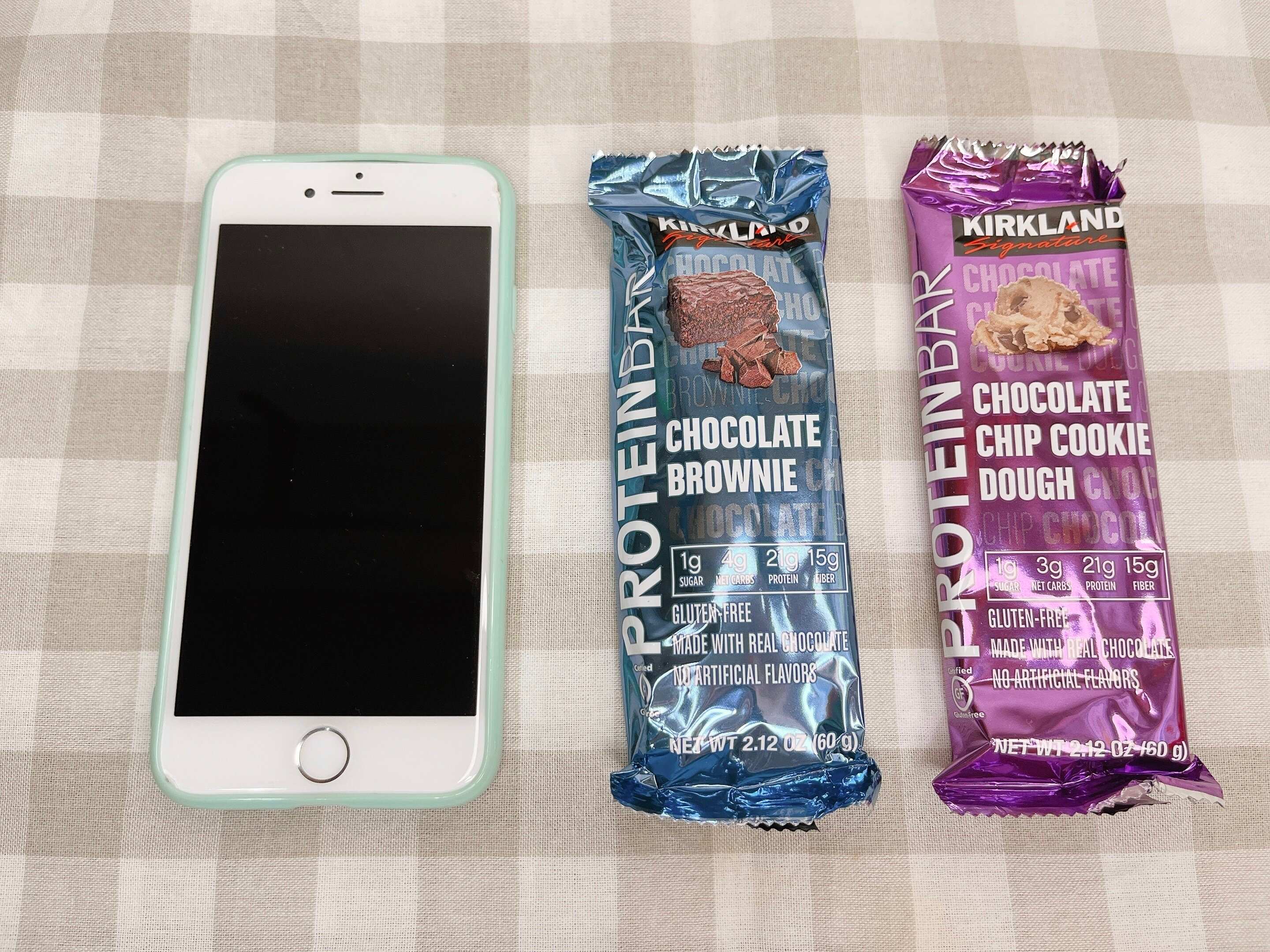 カークランドシグネチャープロテインバーはチョコチップクッキー味とチョコレートブラウニー味の2つのフレーバーが入っているのでその日の気分によって選べるので、飽きずに楽しめます。