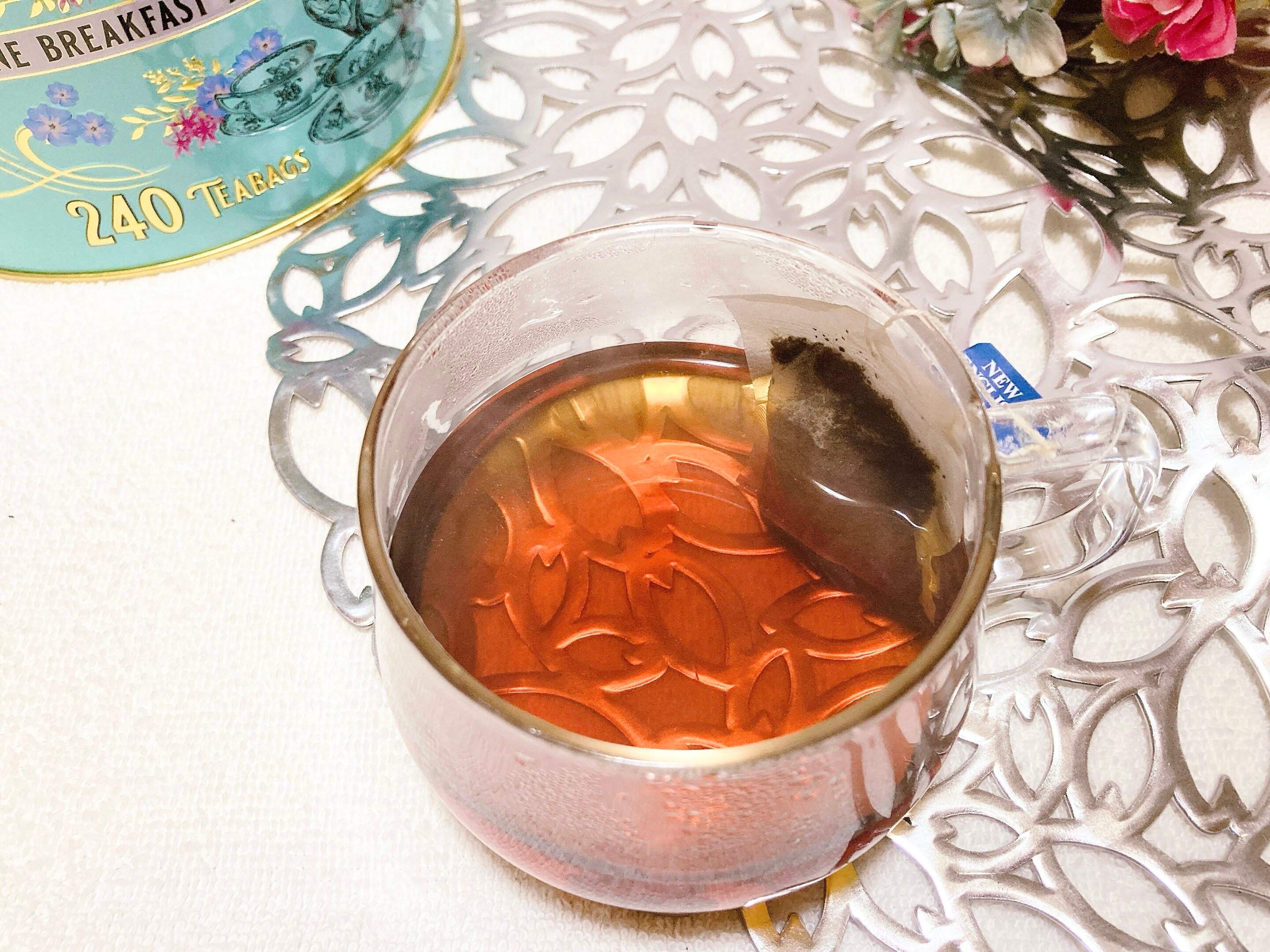 淹れ方はティーバッグをカップに入れ95度以上の熱湯を注ぎ3~4分、お湯に色がしっかりとつくまで抽出してください。この際に注意してほしいのが長く入れすぎると渋さがでやすいです。ある程度の渋さが大丈夫な場合は、ティーバッグを入れたままでも大丈夫だと思いますが、苦手な方はうっかり入れたままにしない方がよさそうです。