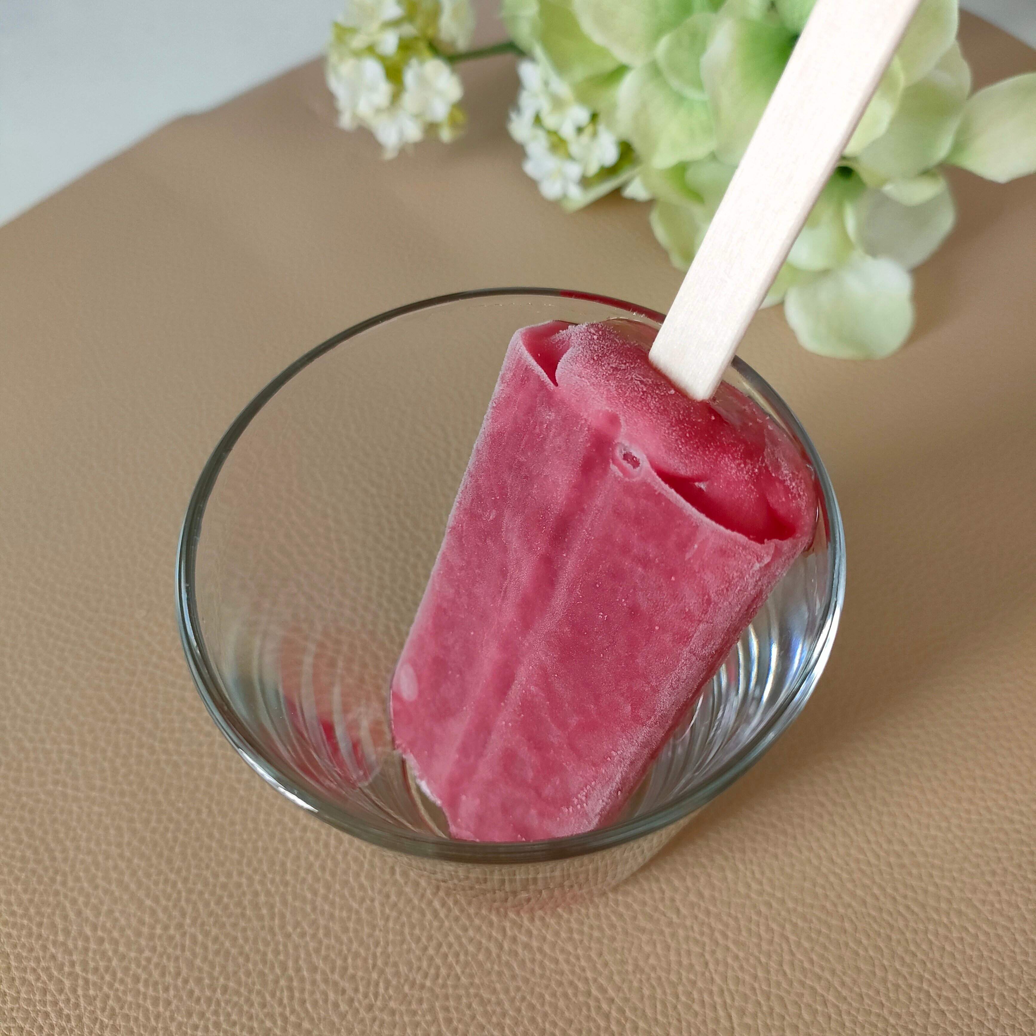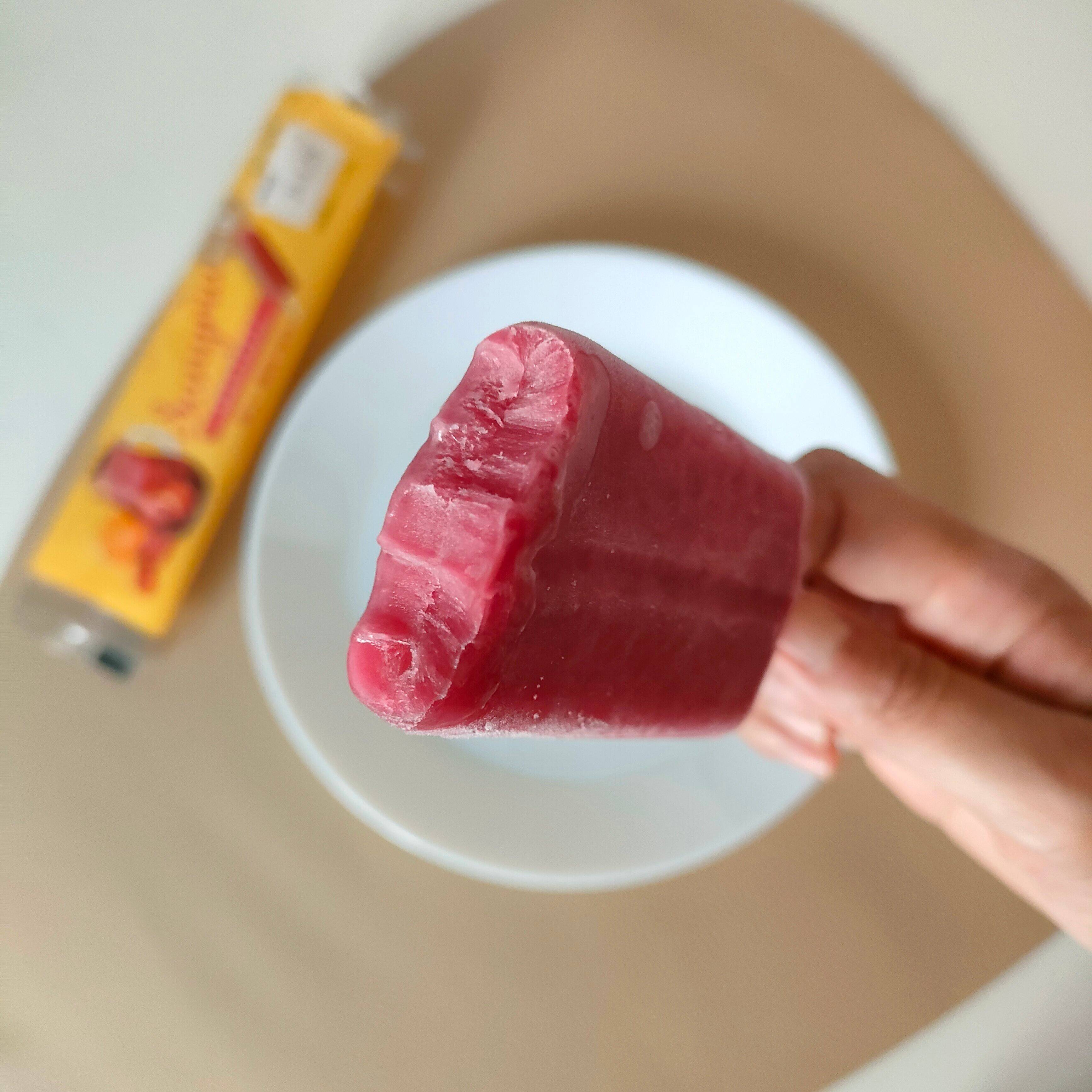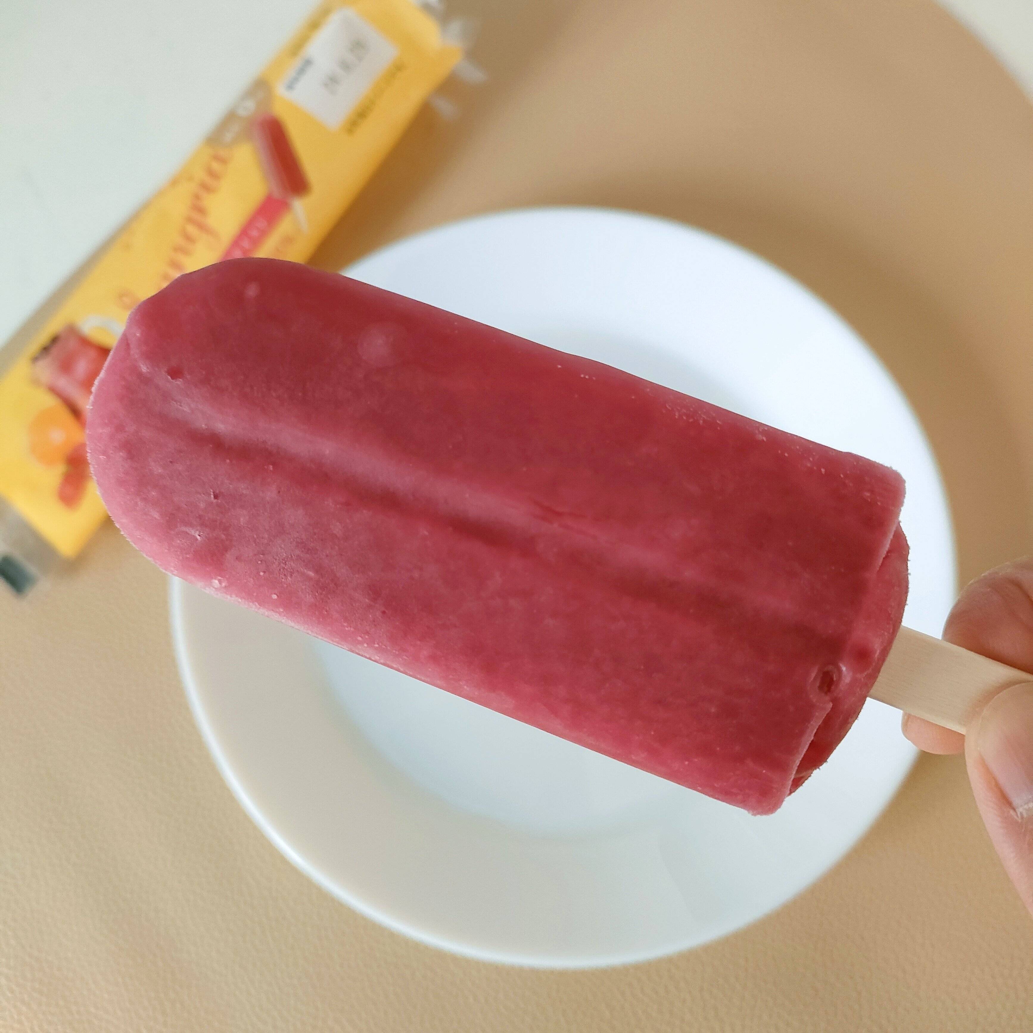 パッケージもおしゃれなデザインで、取り出してみると本当にサングリアのような色鮮やかなアイスが出てきました。