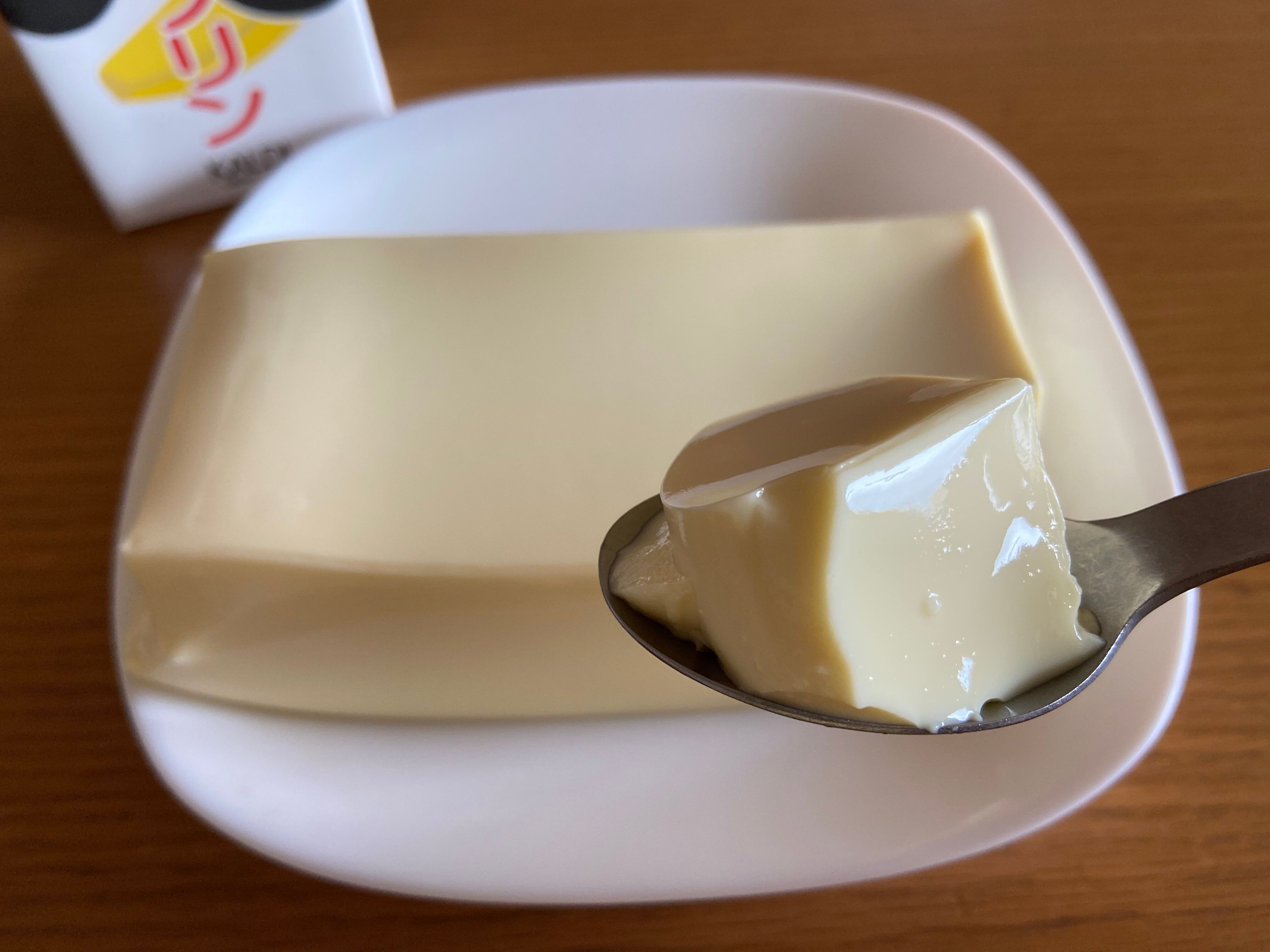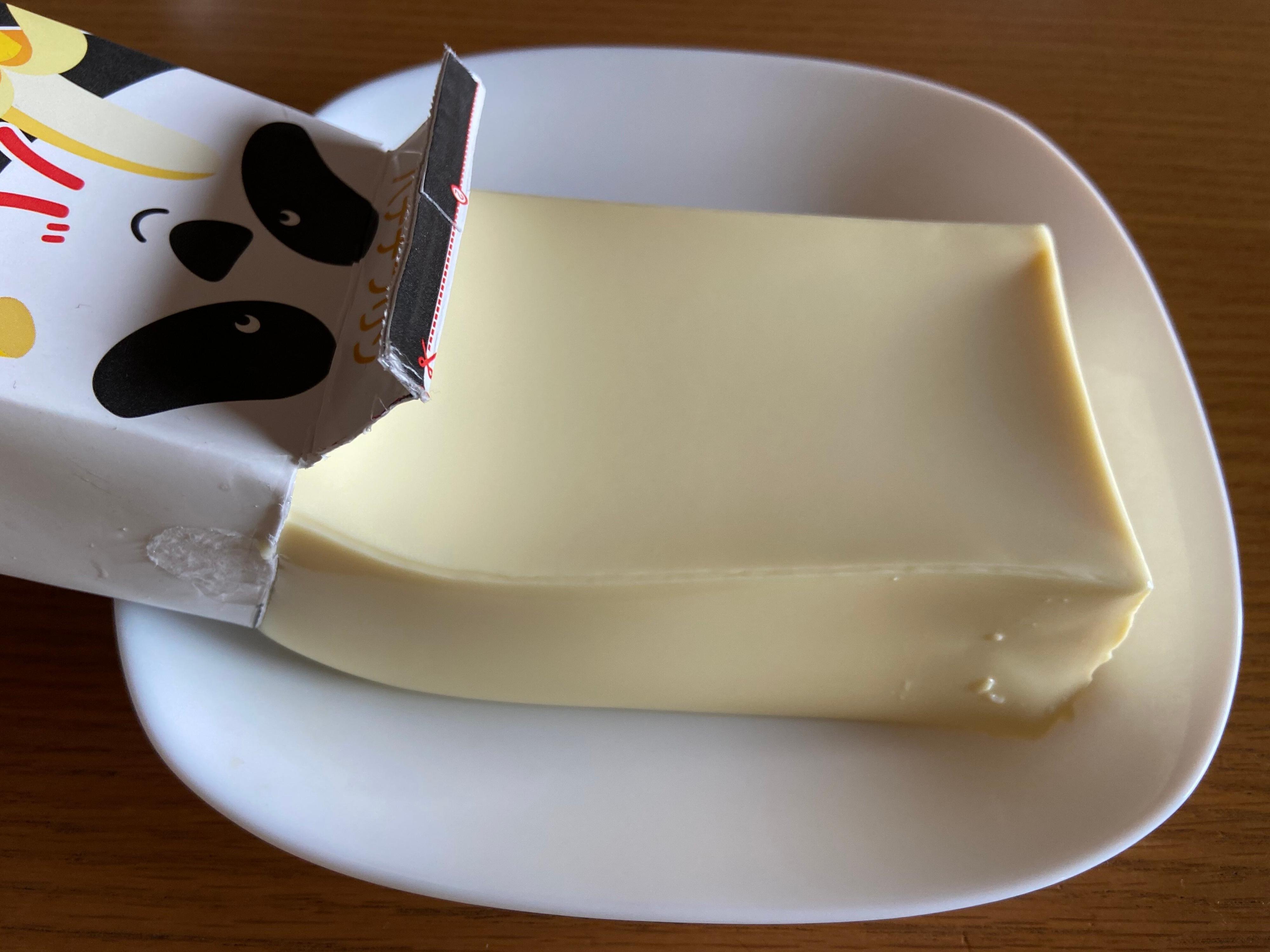 パック入りなので一見、飲み物?と思ってしまいますが、固形のプリンが入っています。たっぷり535gとボリュームがあり、持つとずっしり重たい!