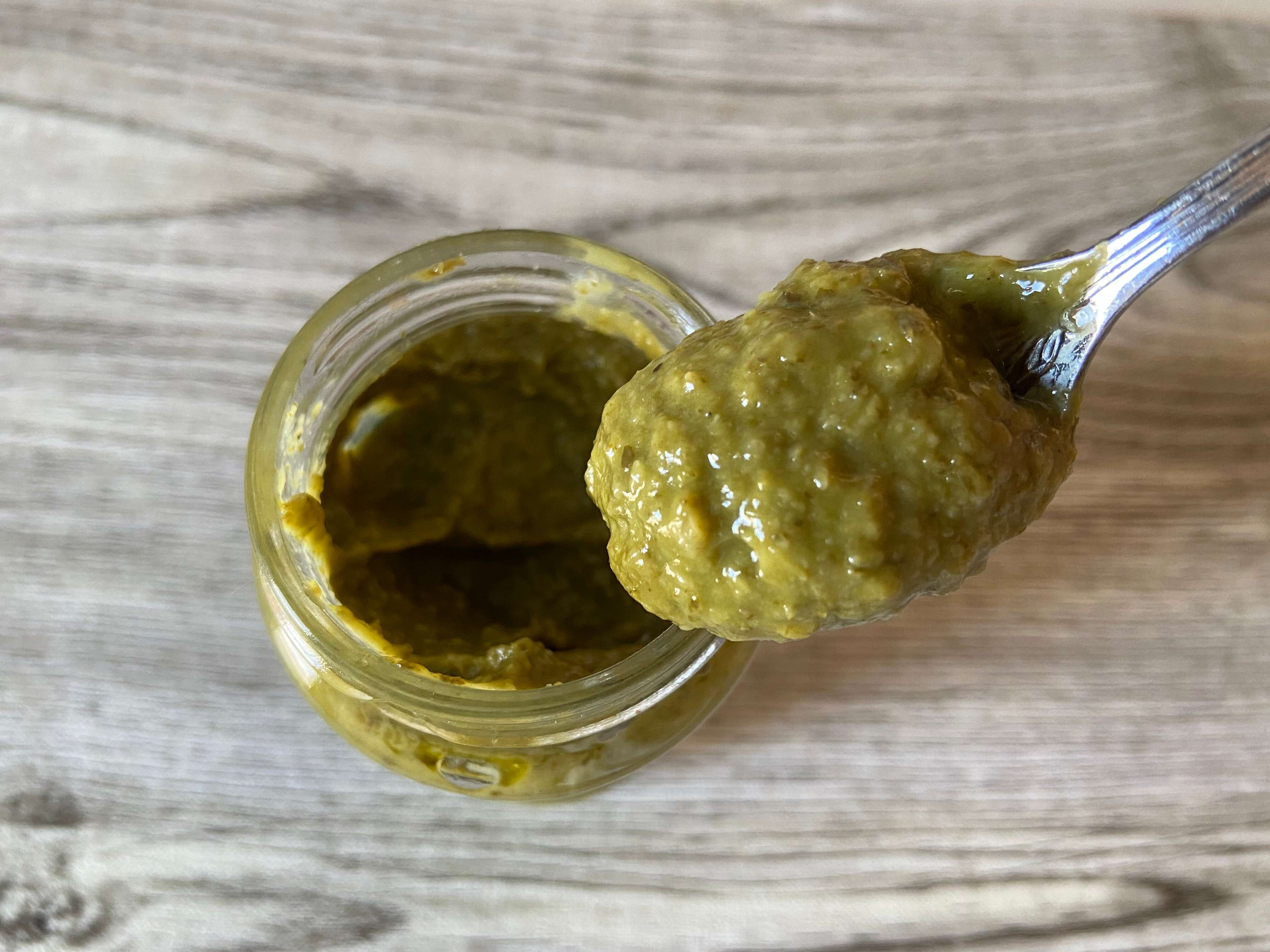 フタを開けてスプーンですくってみると、もったりとしていて、バジルの爽やかな香りがふわっと広がります。バジルの強すぎる香りが苦手な方でも、このジェノベーゼはほどよいバジル感なのでおすすめです。