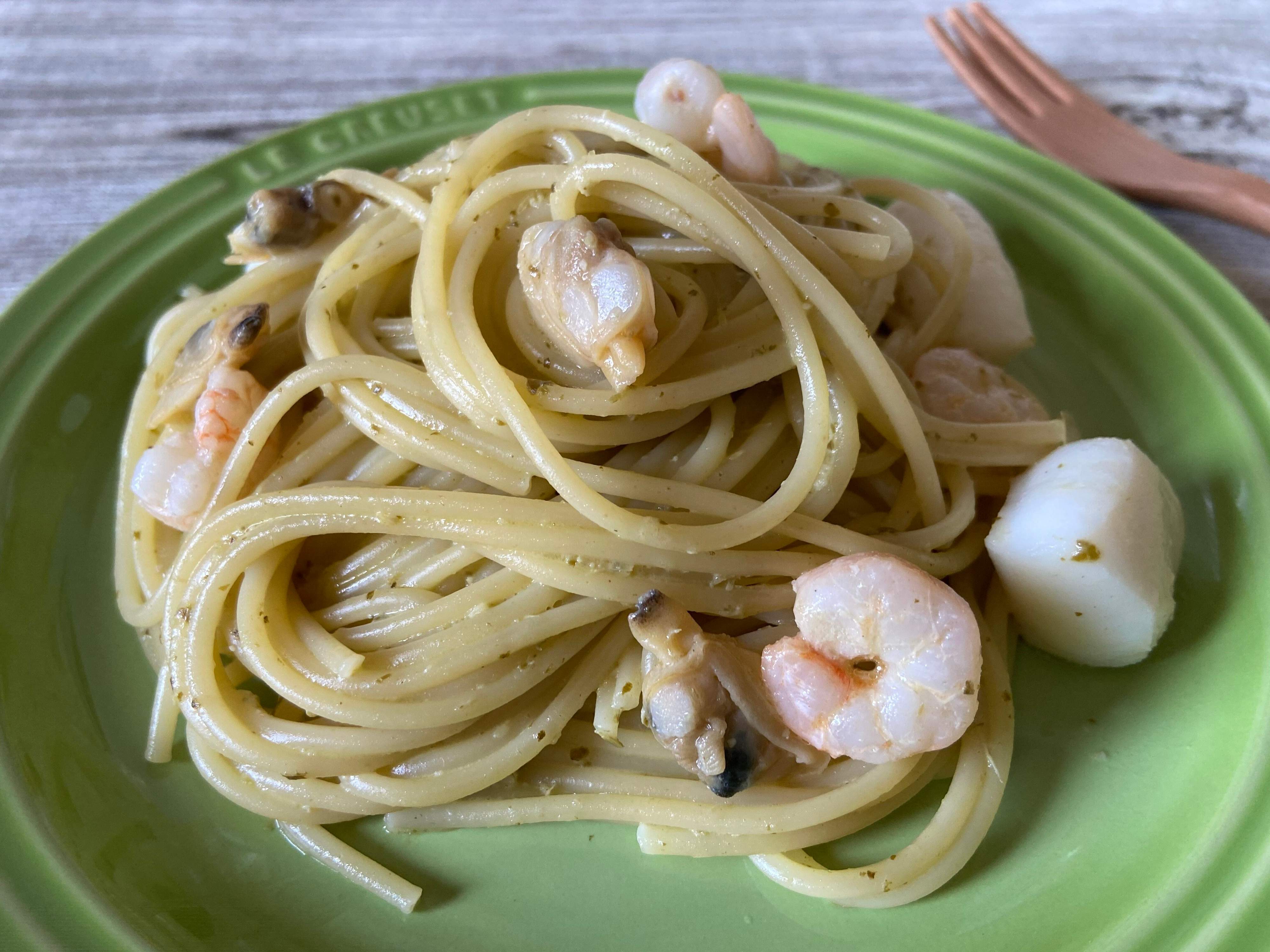 コストコのペーストジェノベーゼを、茹で上げてすぐのパスタに絡めれば簡単に本格的なジェノベーゼパスタの完成。バジルの香りがしっかり感じられ、ペーストに含まれるカシューナッツやパルミジャーノ・レッジャーノチーズの旨みやコクもありとても濃厚でおいしい一皿。