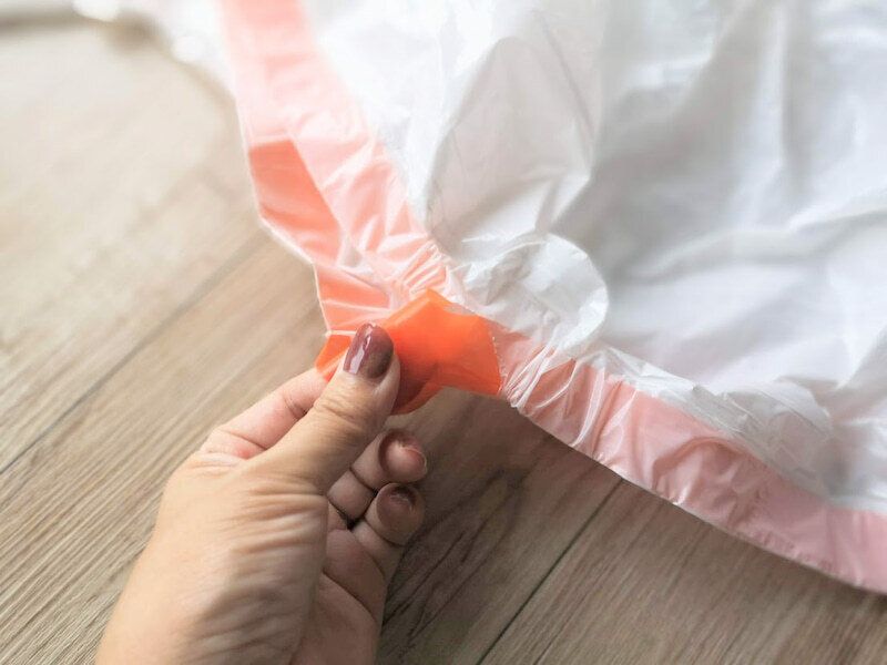 ダストボックスにセットしたときに緩みもないので、ゴミを入れずぎてゴミ袋が抜け落ちていた! なんてこともありませんし、ゴミ箱の蓋ギリギリまでゴミを入れても、紐付きなのでノンストレスで口を閉じることができるのも最高です。