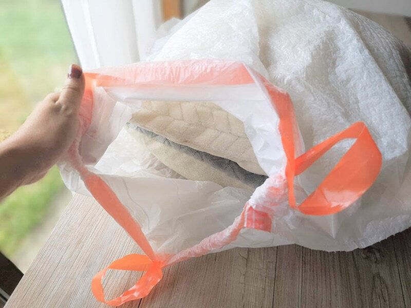 入るかな?と思うようなサイズ感の毛布なども、伸縮性がある袋なので、ギュッと押さえながら詰めるとすんなり入ってしまうことも多く、袋の口も結ぶことで開け閉めすることができるので、繰り返し使うこともできます。