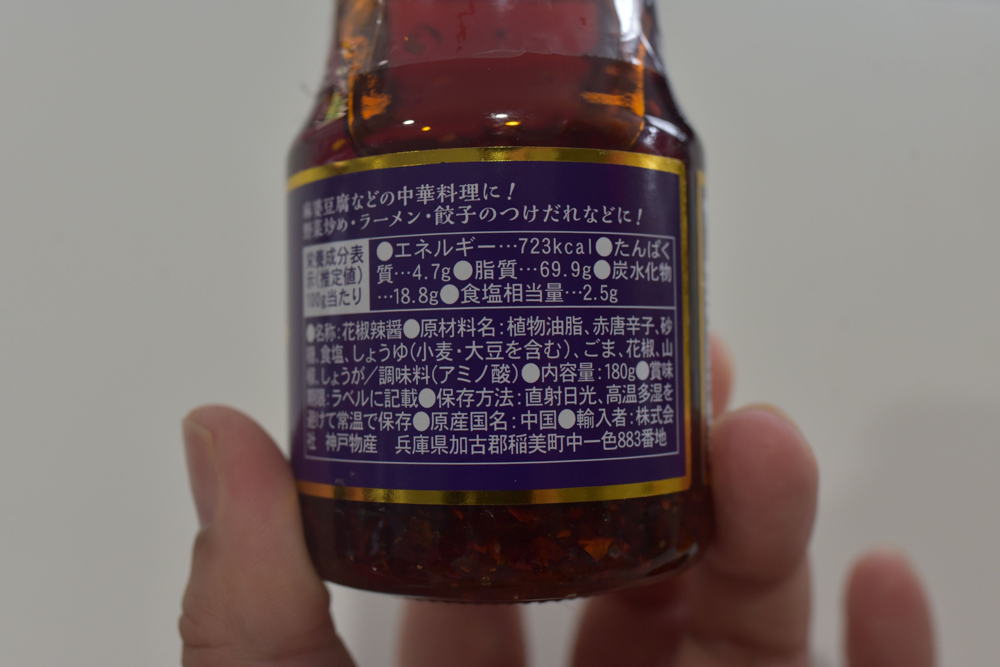 今回ご紹介するのは、辛さと風味をプラスした本格中華調味料の「花椒辣醤(ファージャオラージャン)」です。180g入りで、価格は筆者購入時点で236円。