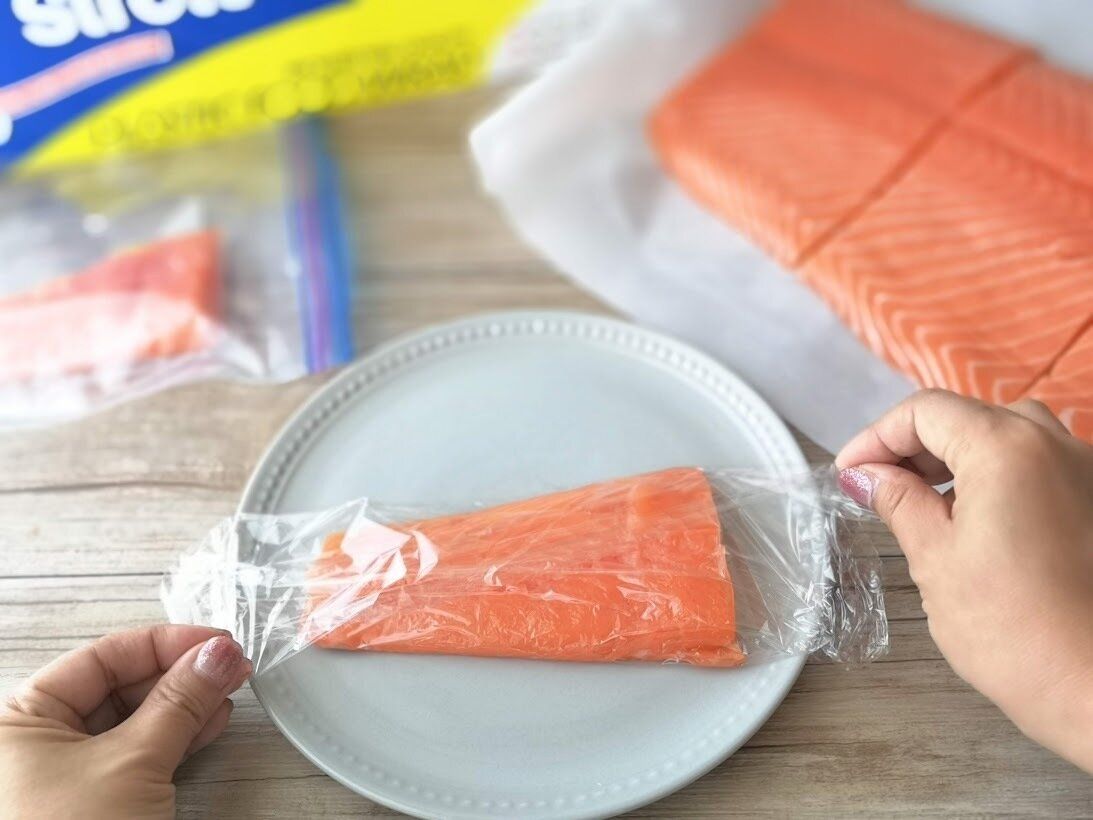 ブロックごとに切り出したサーモンは、食べきれない分は冷凍保存がオススメです。