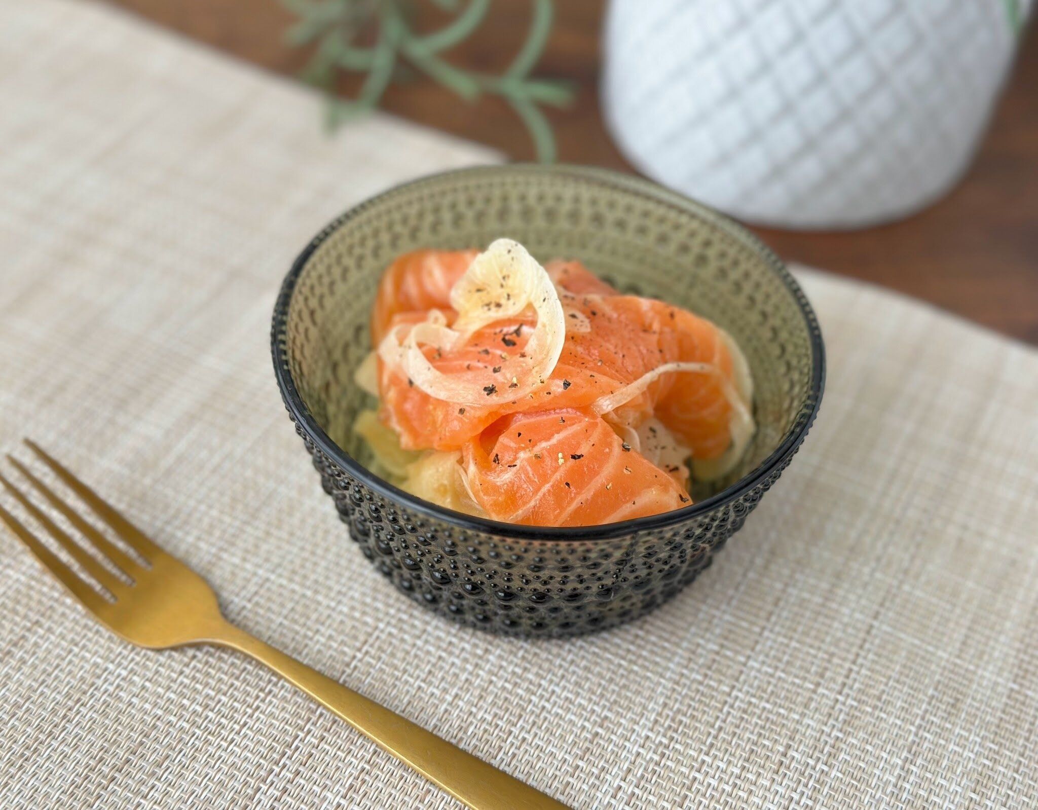 白ワインが進んじゃう一品なのはこれ!「サーモンマリネ」です。