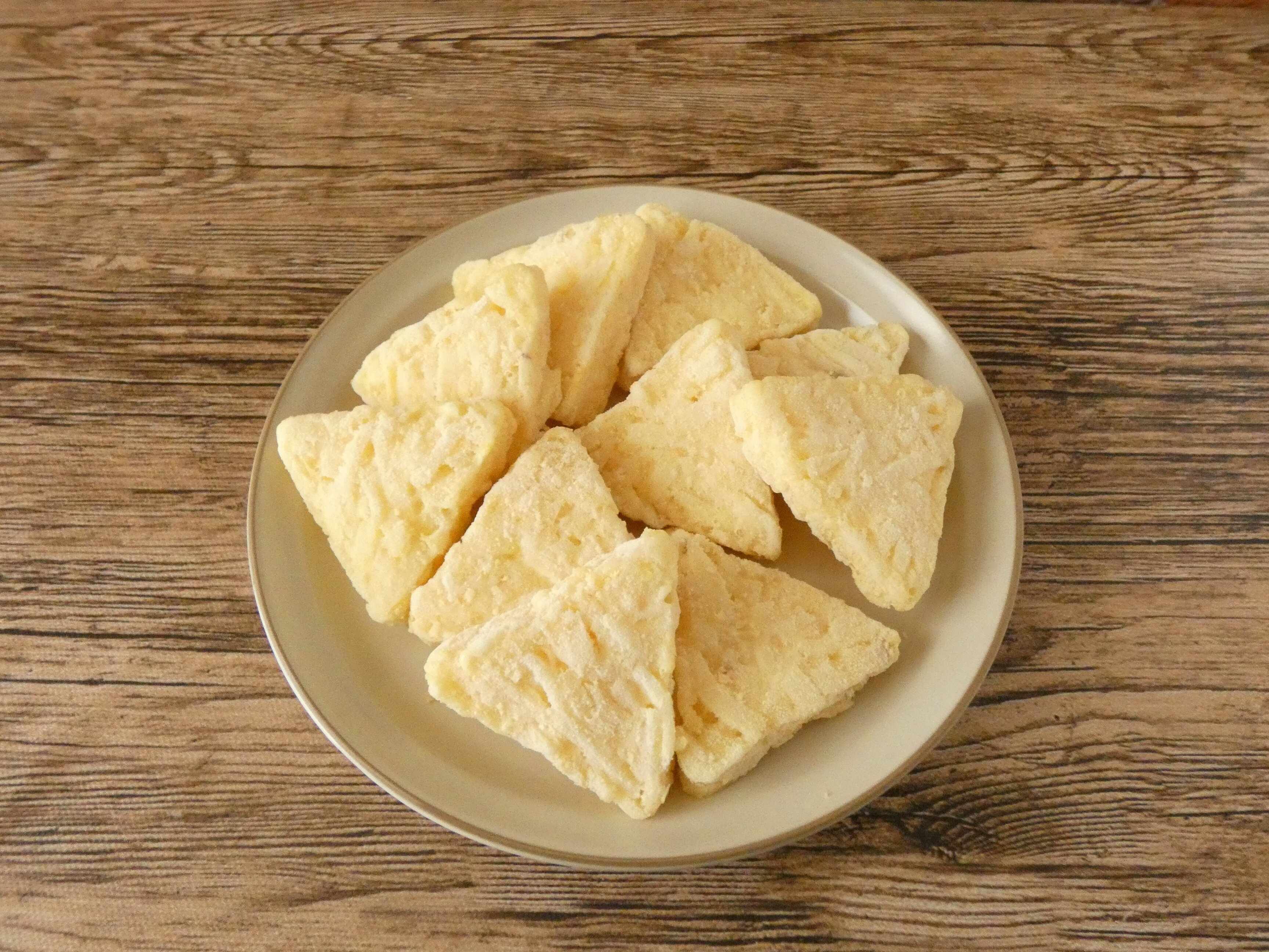 袋を開けるとほのかにチーズの香りがして、三角形にまとめられたかわいいサイズのハッシュドポテトがゴロゴロ入ってます。