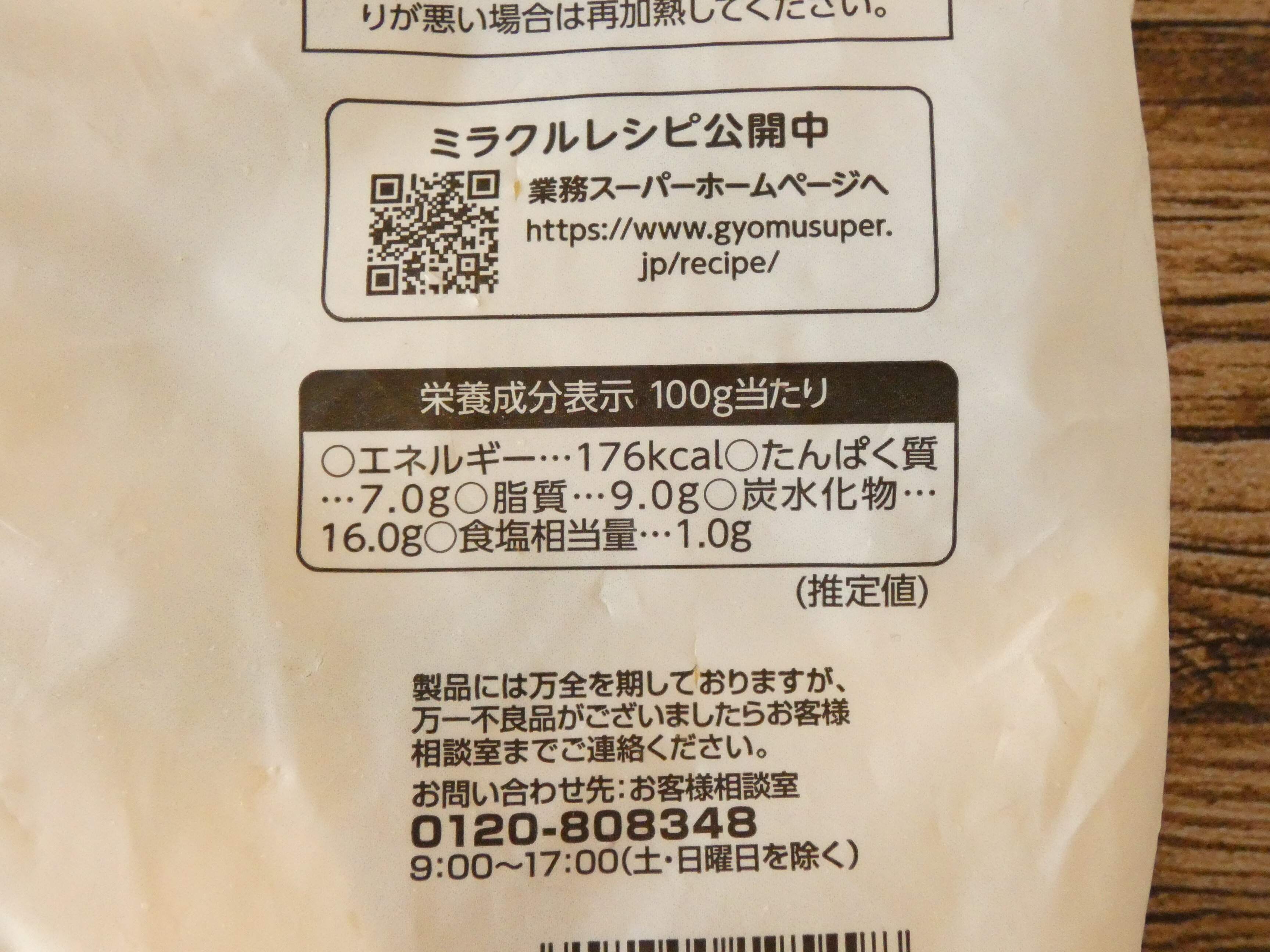 栄養成分表示を見ると100g当たりのエネルギーは176kcal。