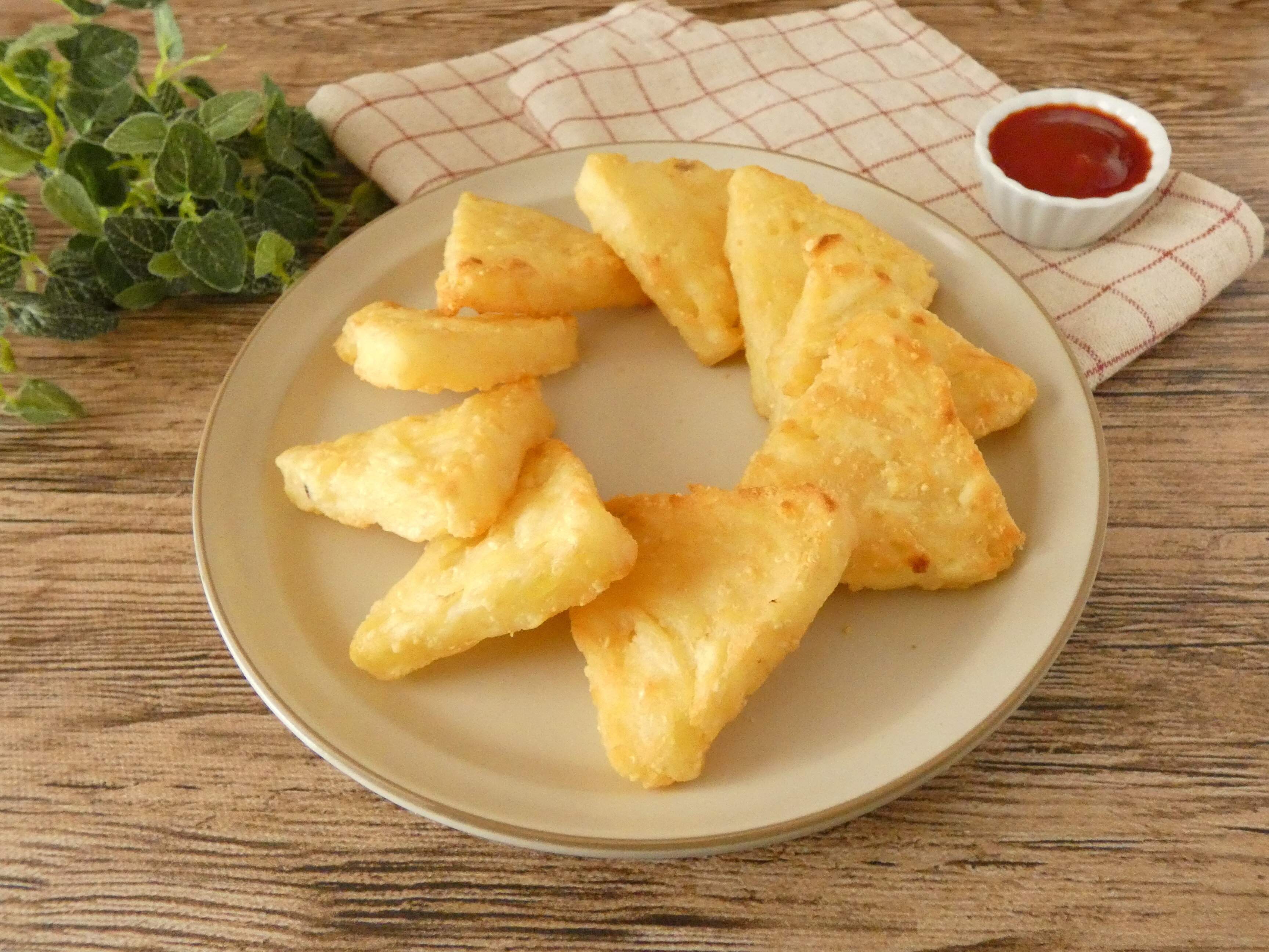 外はカリカリ食感で、中のポテトはホクホク。チーズの香りはほんのりする程度なので、しつこくないです。このまま食べると、うっすらと塩味がするくらいなので、ケチャップなどをつけて食べるのがオススメです。