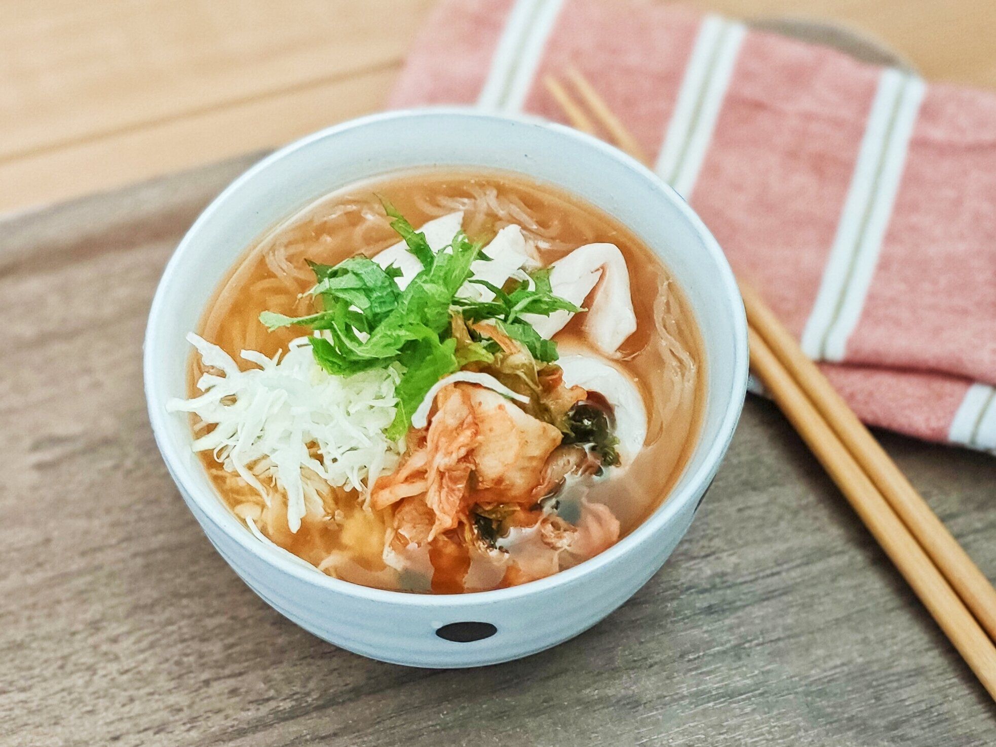 こちらの「キムチ冷麺」はじわりとくる辛さがやみつきになりそうな味です。
