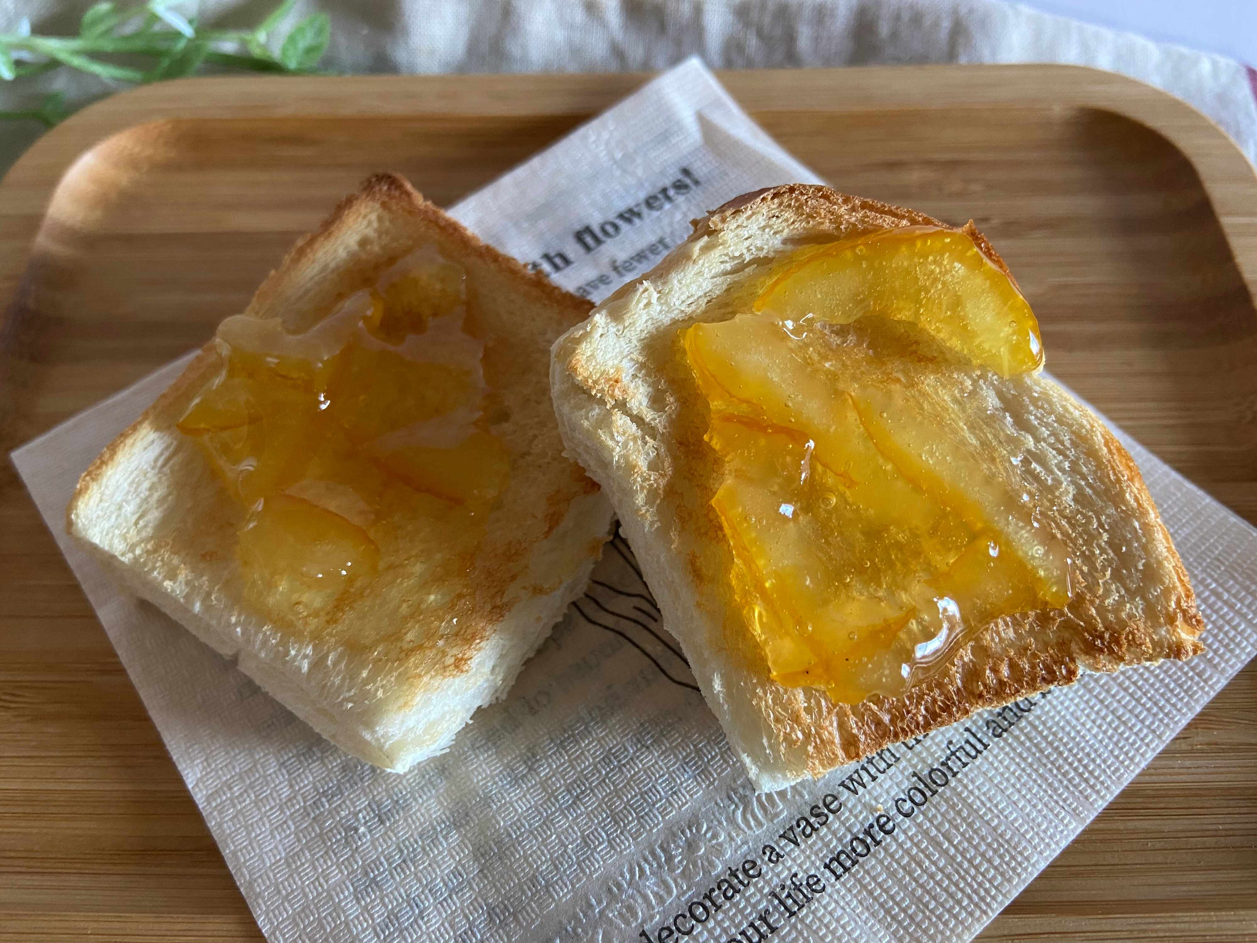 ゆず茶はジャムのようにパンのおともとしても活用できます。筆者はトーストにバターを塗ってゆず茶をのせて食べるのがお気に入り。とろりとしたゆず茶がトーストの熱で少し溶けてパンに染み込み、コクのあるバターの風味とさっくりとしたパン生地との相性が抜群!